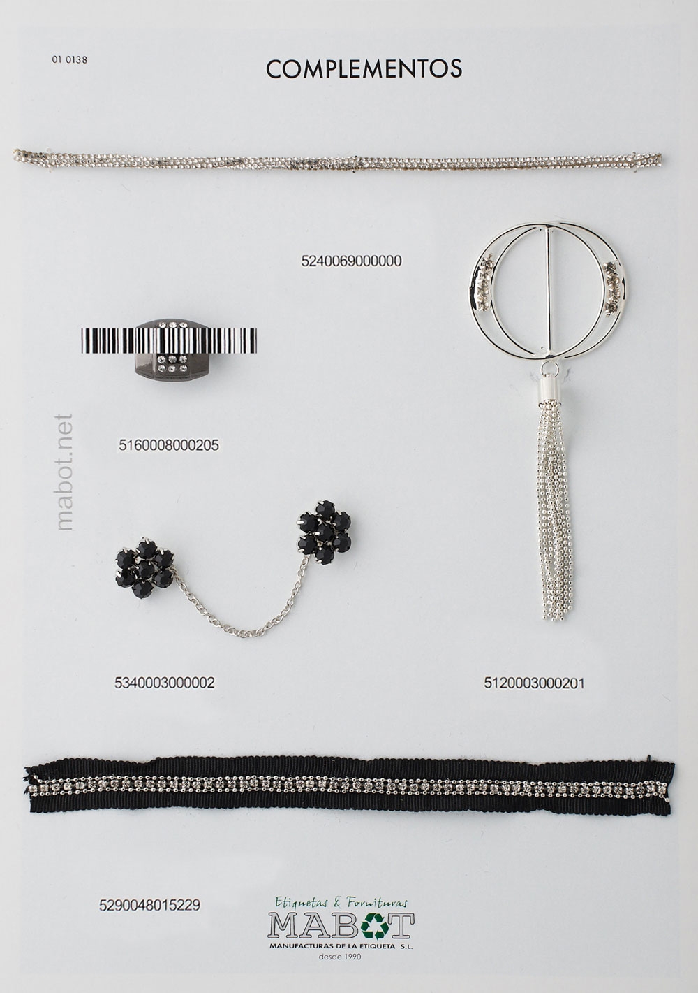 Cadena con lineas de strass, cadena con hebilla de strass, boton doble unido por cadena, grosgrain con cadena central.