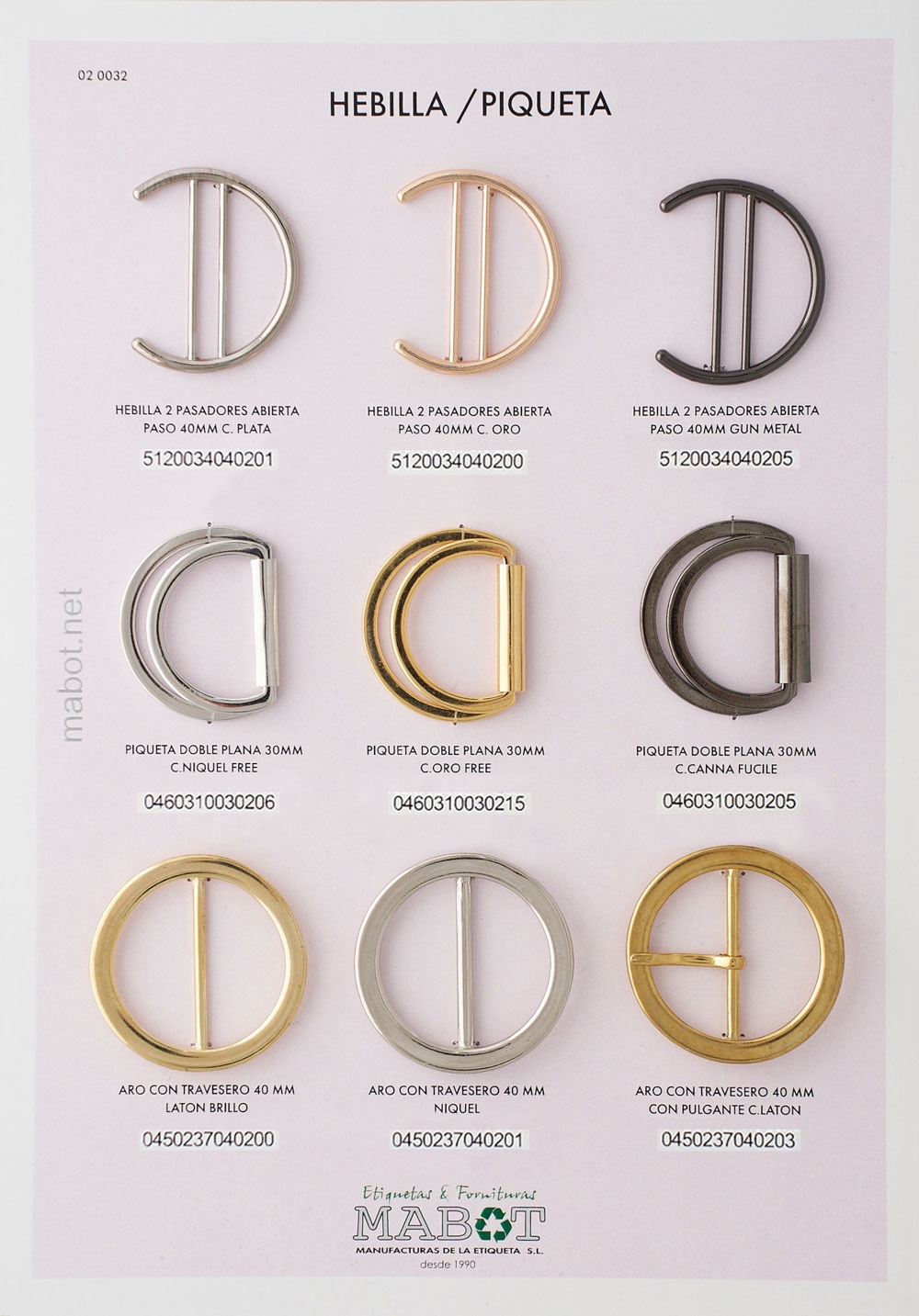 Hebilla con 2 pasadores, disponible en color plata, oro y gun metal,