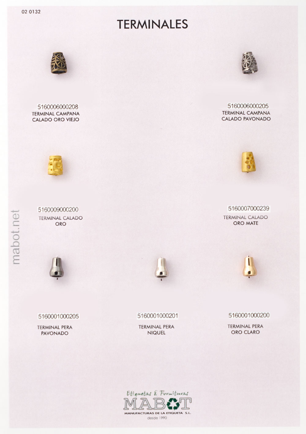 Terminal campana calado, disponible en oro viejo, pavonado.