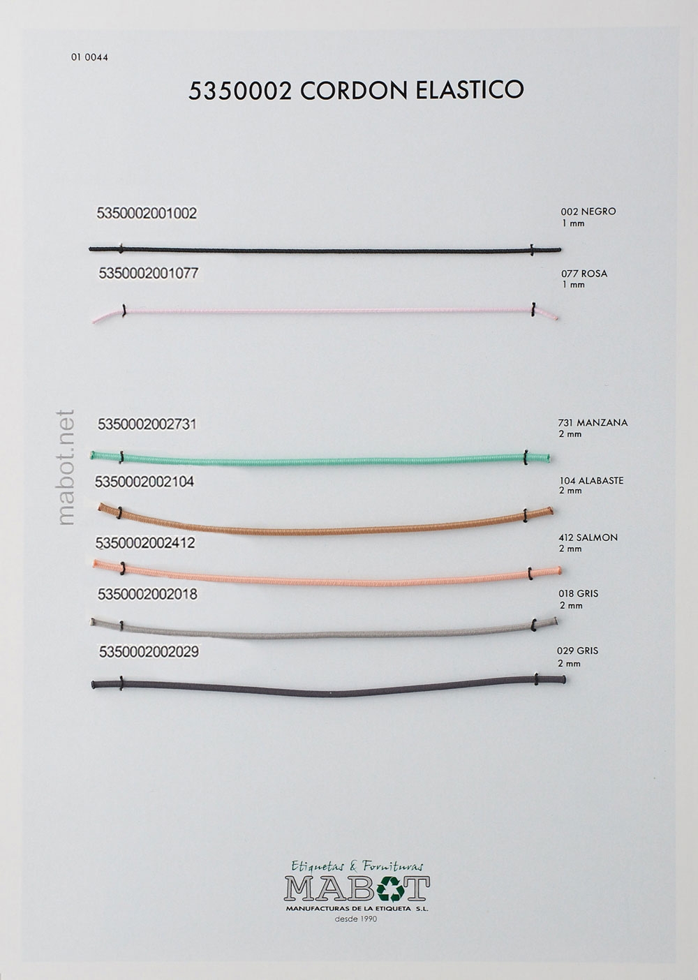 Cordón Elástico de 1mm y 2mm disponibles en varios colores.