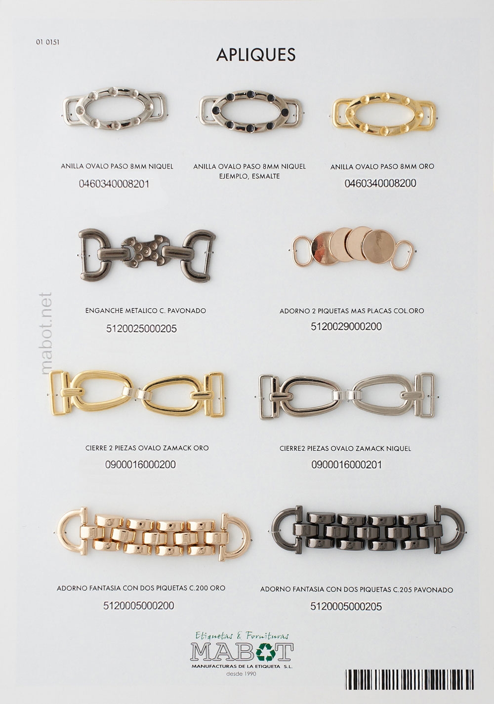 Adornos fantasía estilo cadeneta con piquetas en oro y pavonado.
