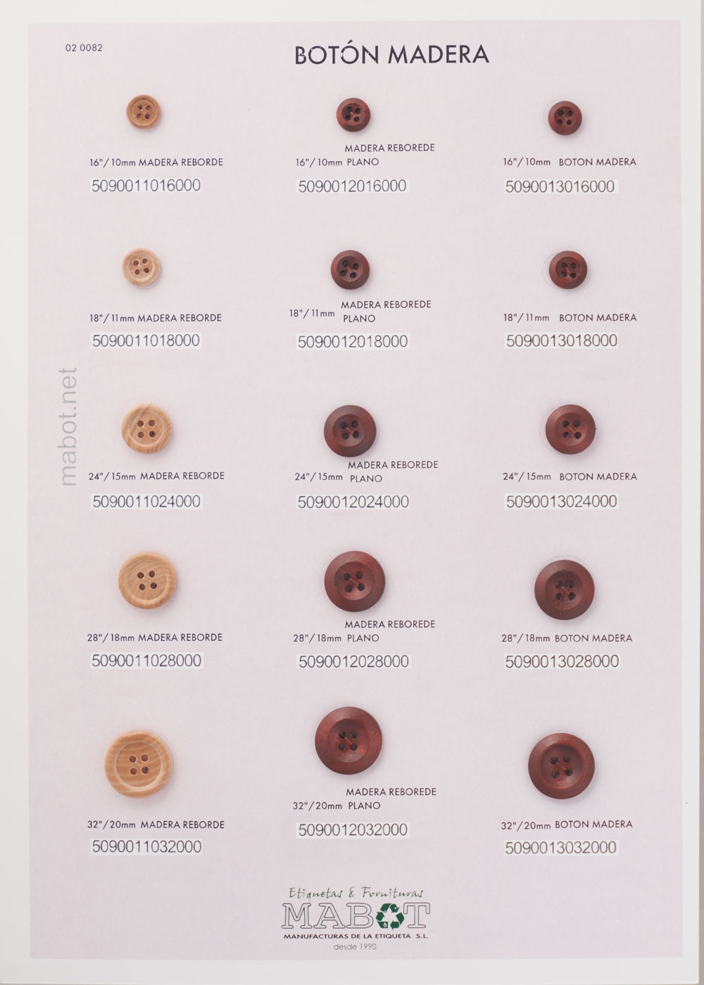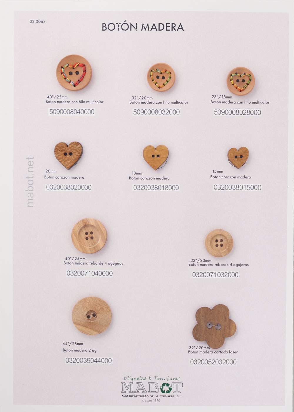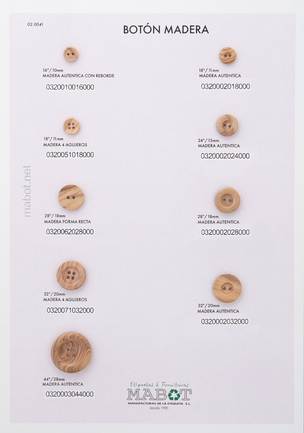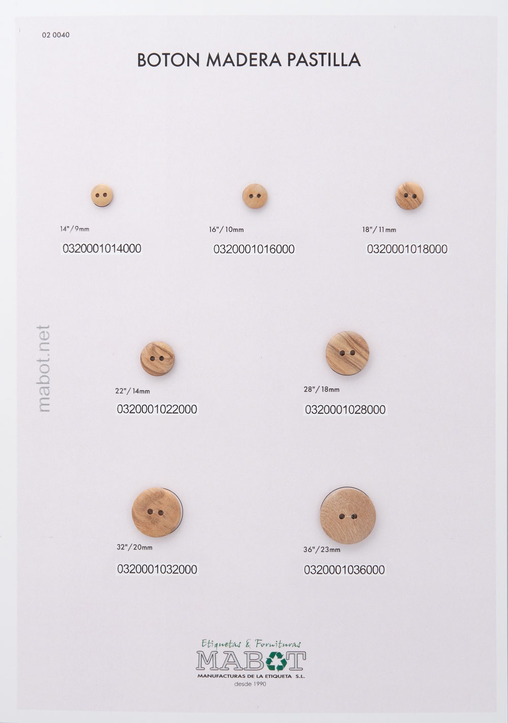 Botón madera pastilla disponible de la línea 14 a la línea 36.