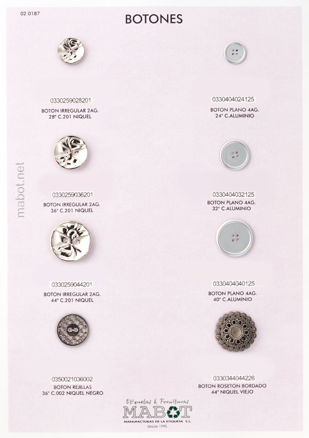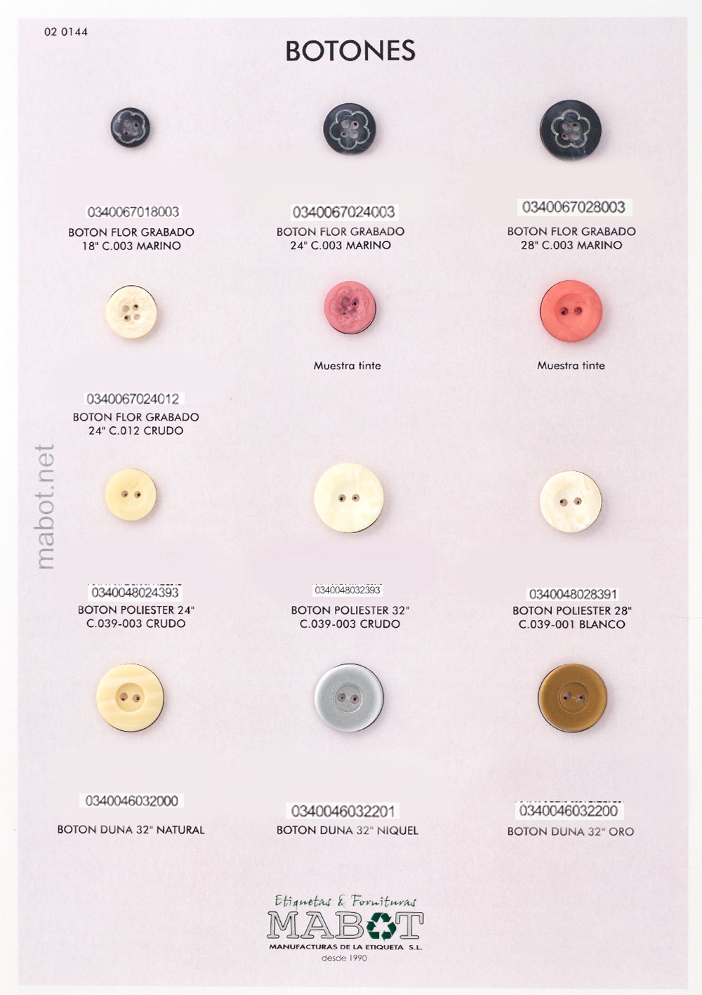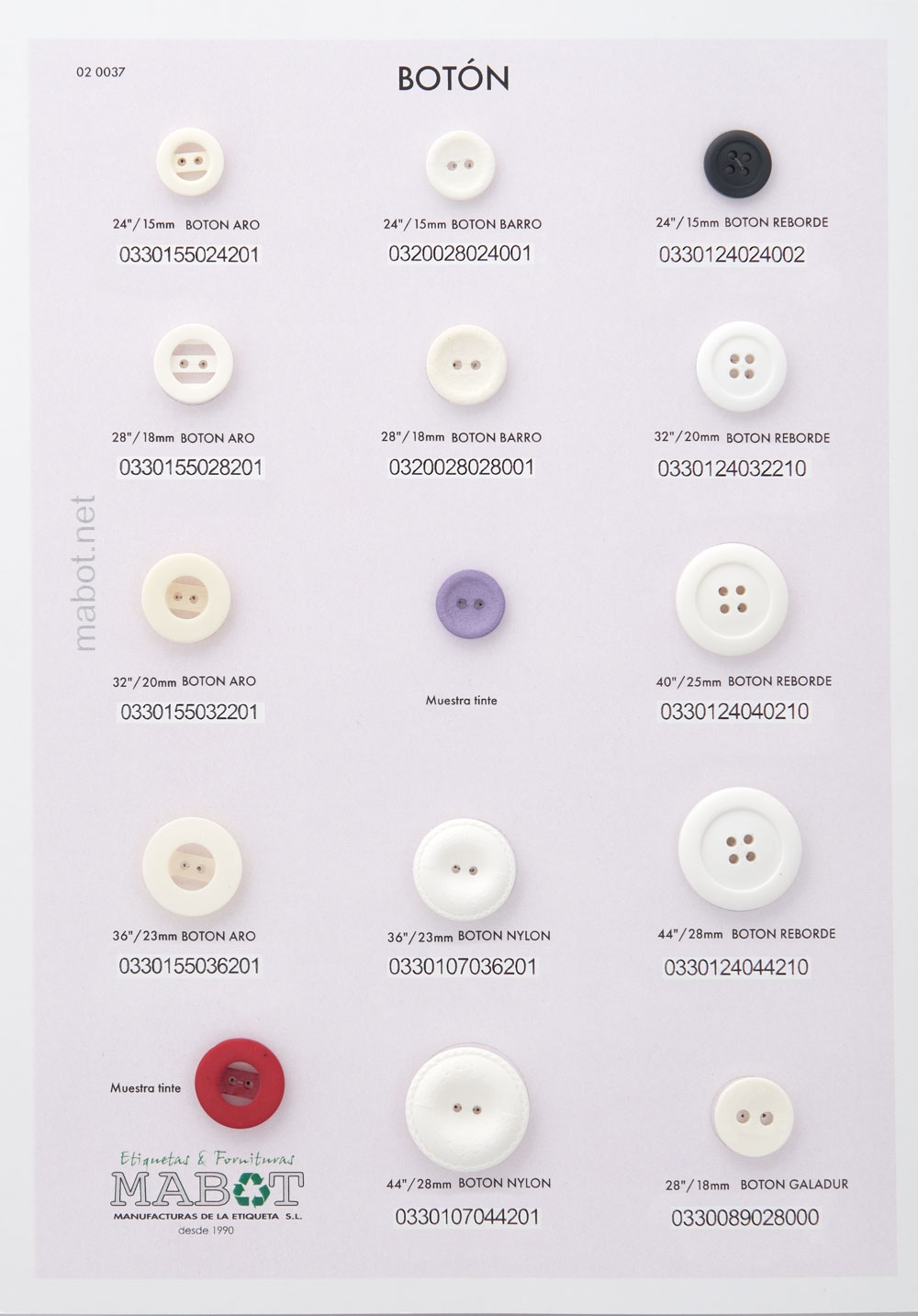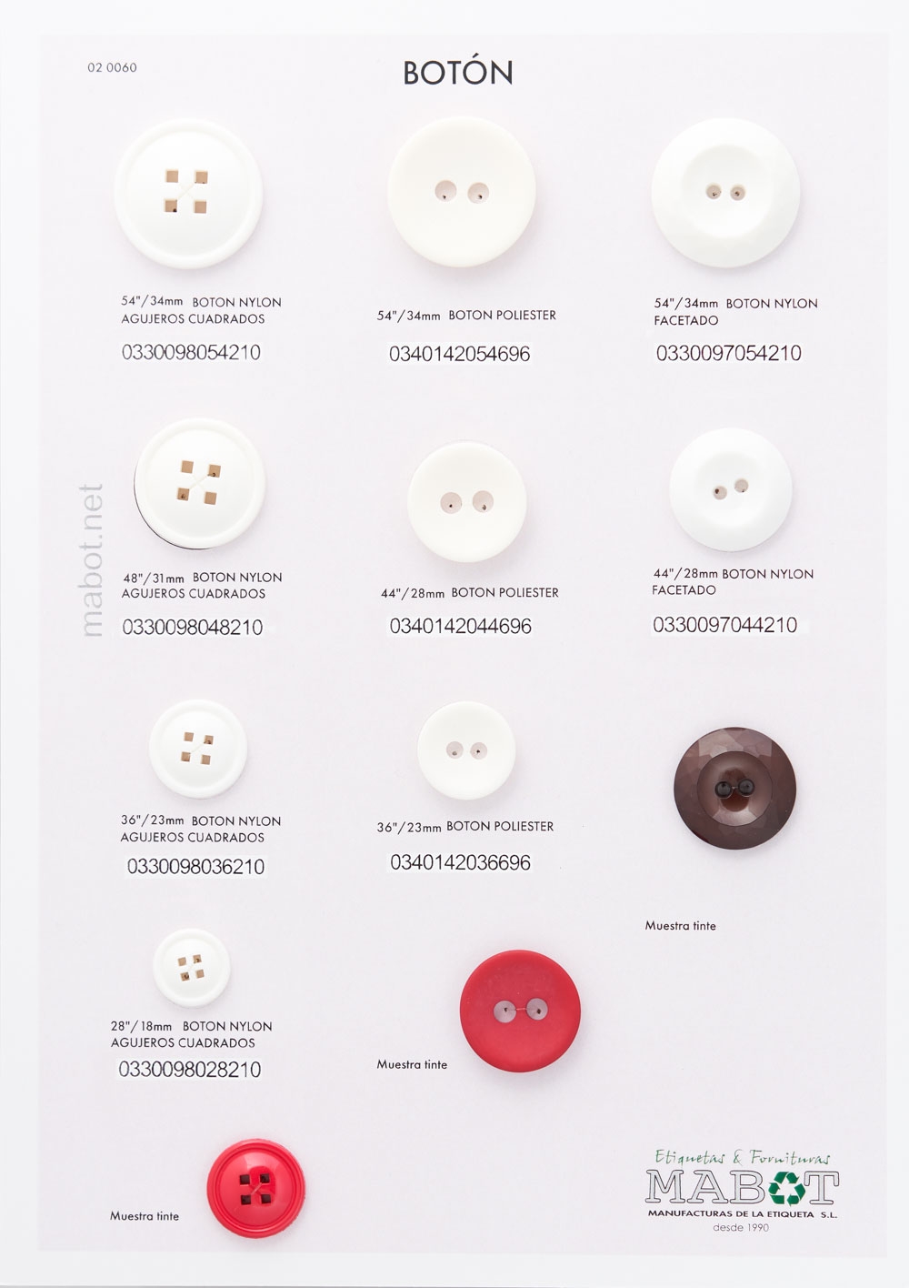 Botón nylon: línea 36 y línea 44.