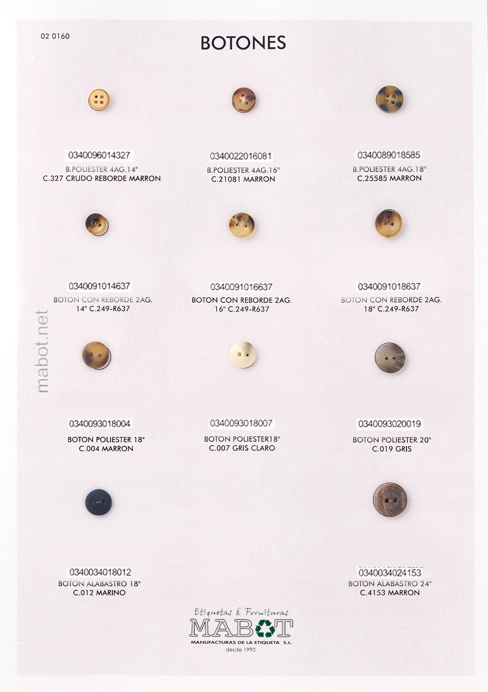 Botón poliester 18", disponible en: marrón, gris claro.
