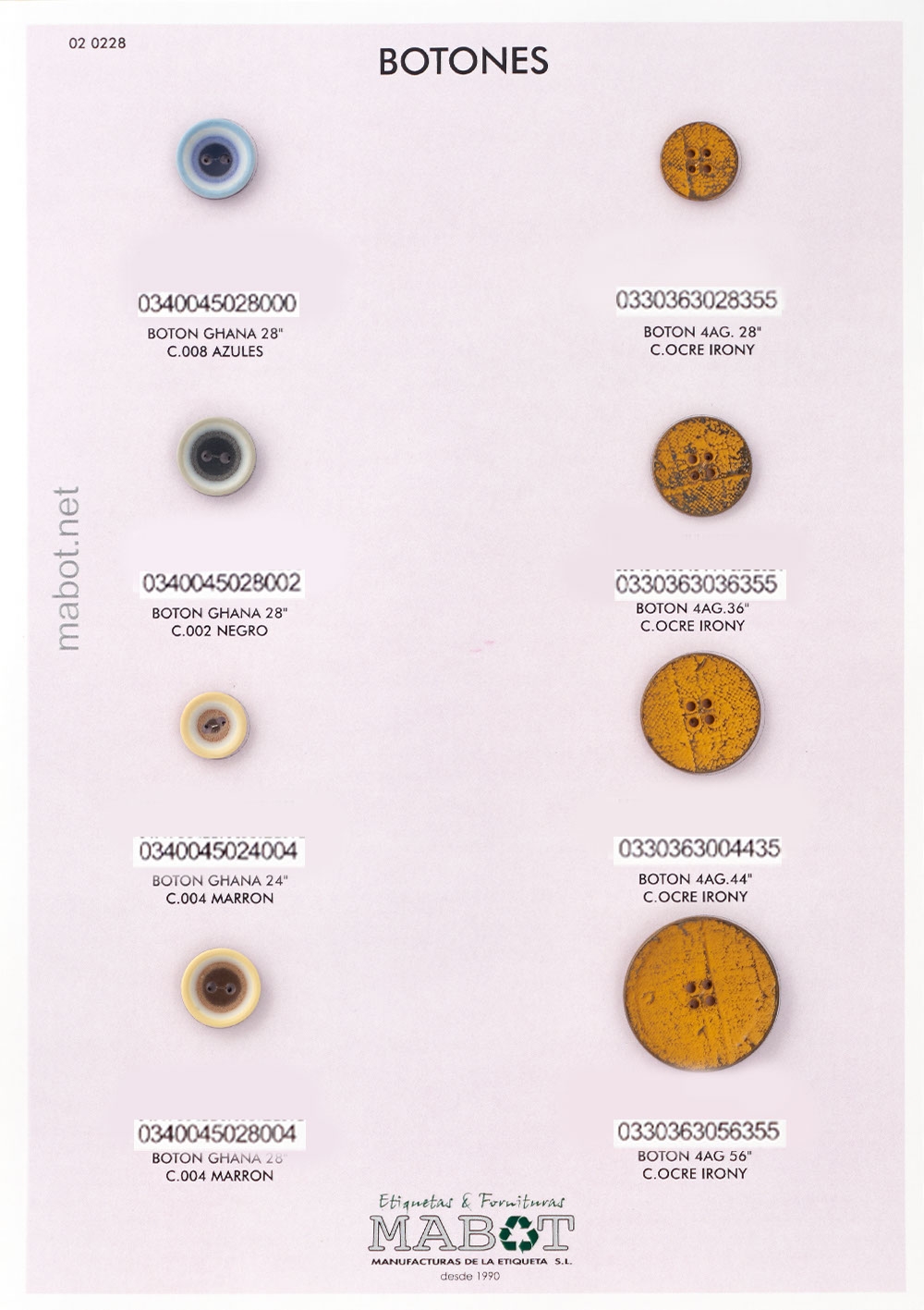 Botón ghana 28", disponibles en color: azul, negro, marrón.