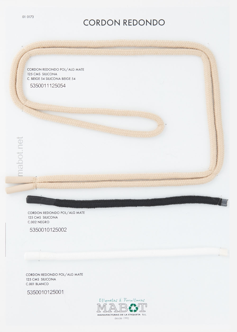 Cordón redondo poliéster/algodón mate 125cms nudo silicona,