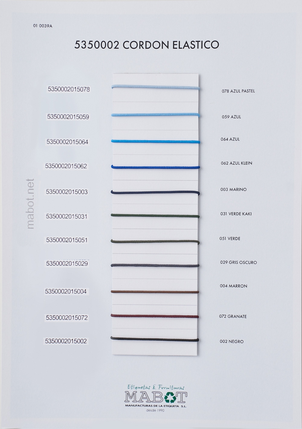 Cordón elástico 1,5mm, colores disponibles: blanco, blanco roto, crudo, gris, arena, rosa, amarillo, naranja, fucsia, rojo, lila, azul pastel, azul, azul klein, marino, verde kaki, verde, gris oscuro, marrón, granate, negro.