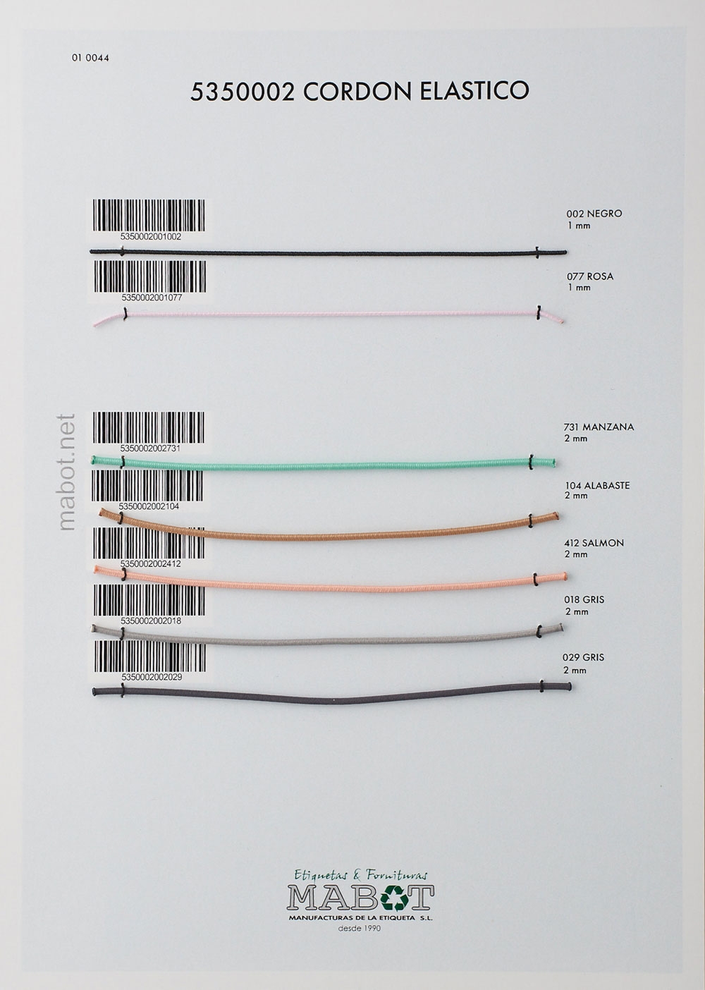 Cordón elástico 2mm, colores disponibles: manzana, alabaste, salmón, gris.