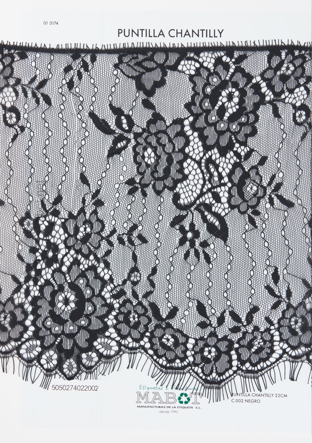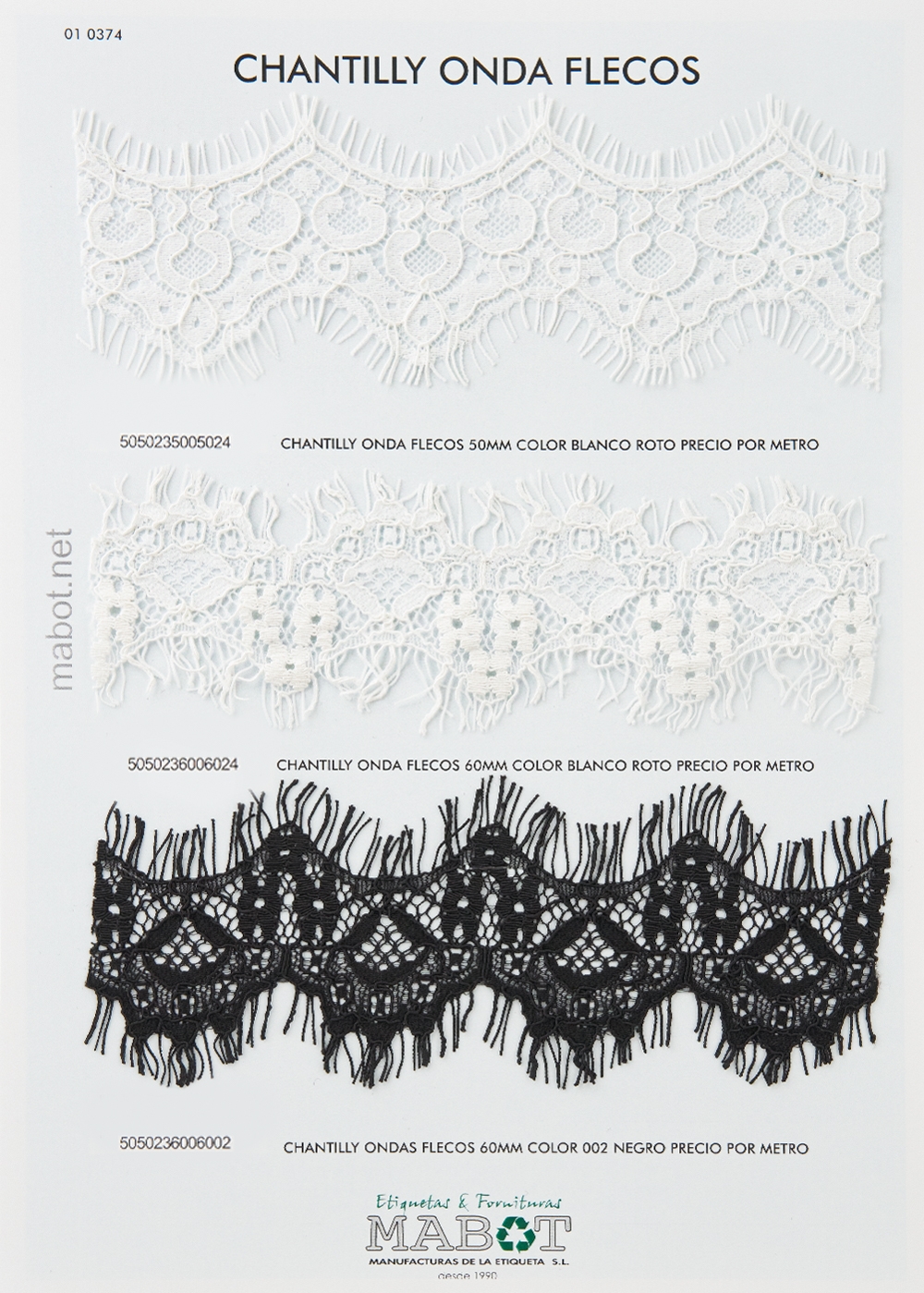 Chantilly onda flecos 60mm, disponible en: blanco roto, negro.
