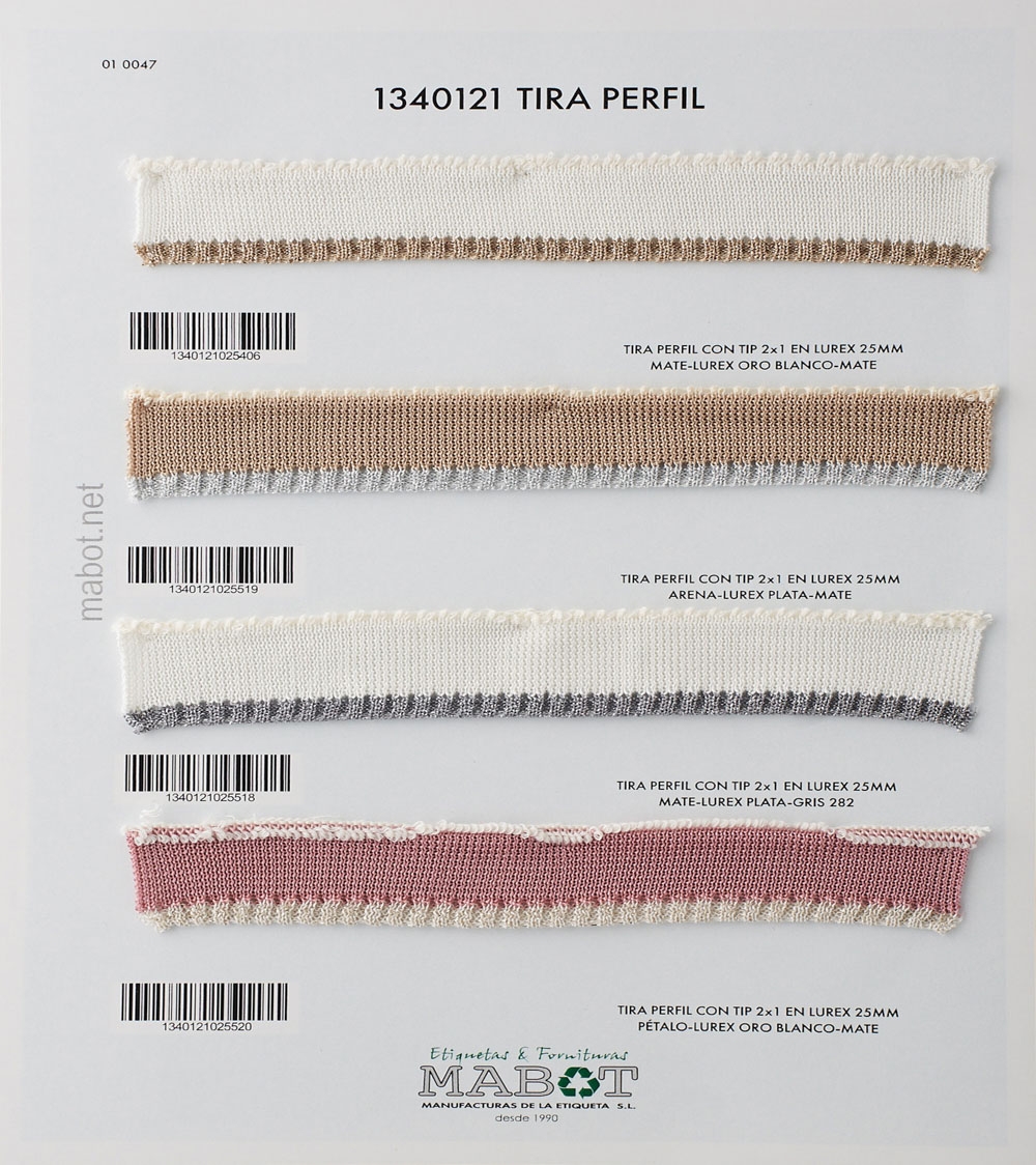 Tira perfil con tip 2x1 en lurex 25mm, colores disponibles: