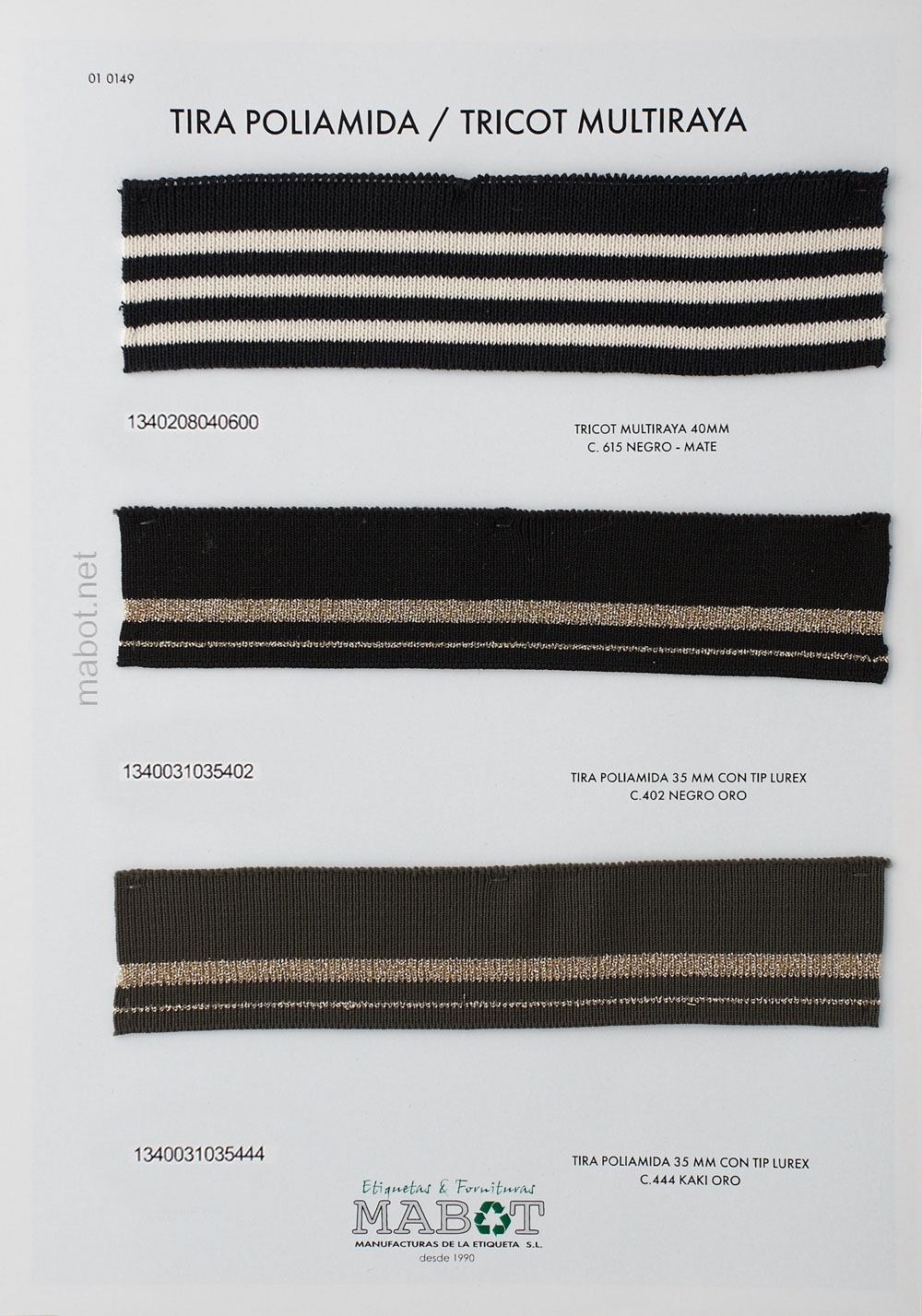 Tira poliamida 35mm con tip lurex, colores disponibles: