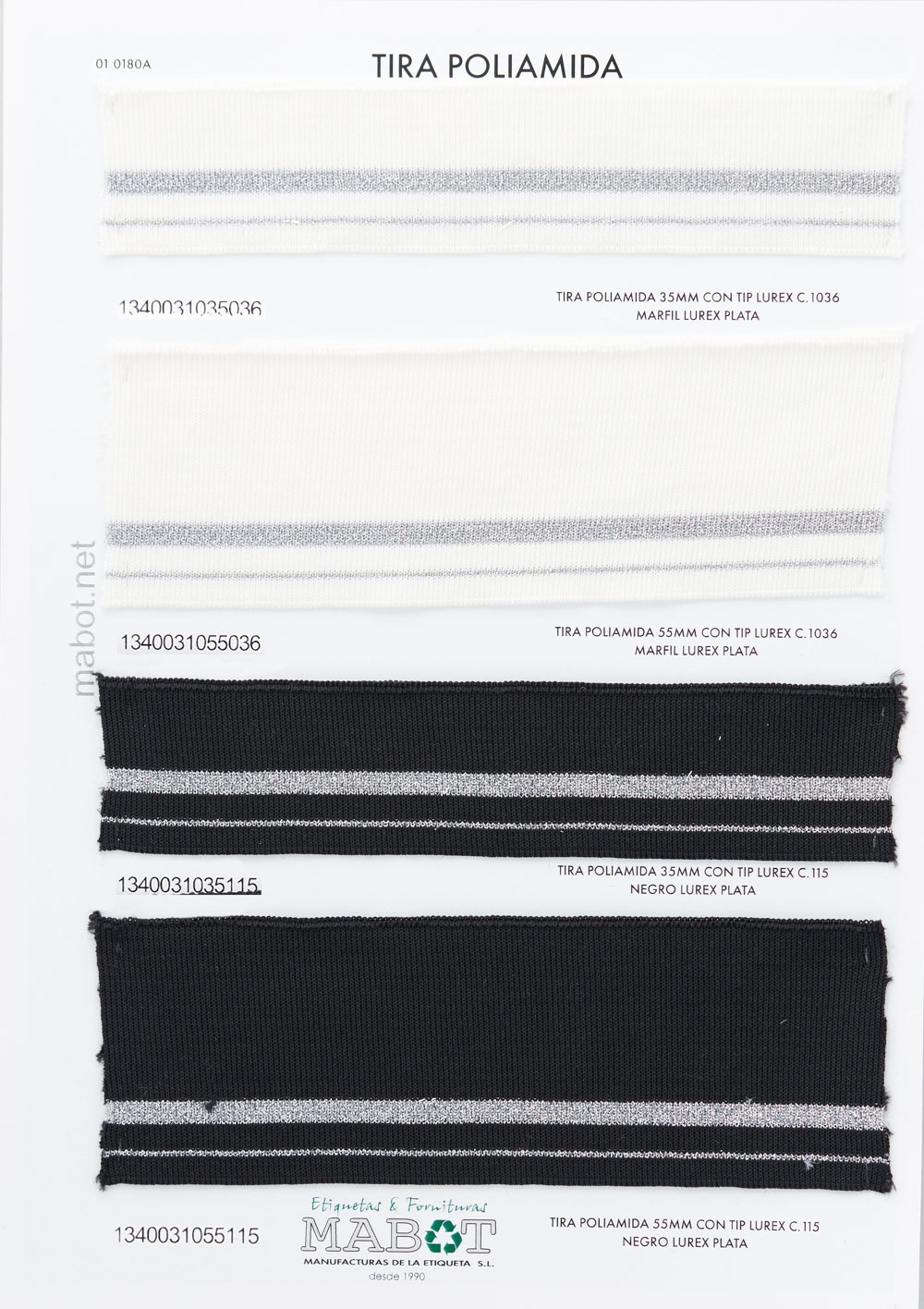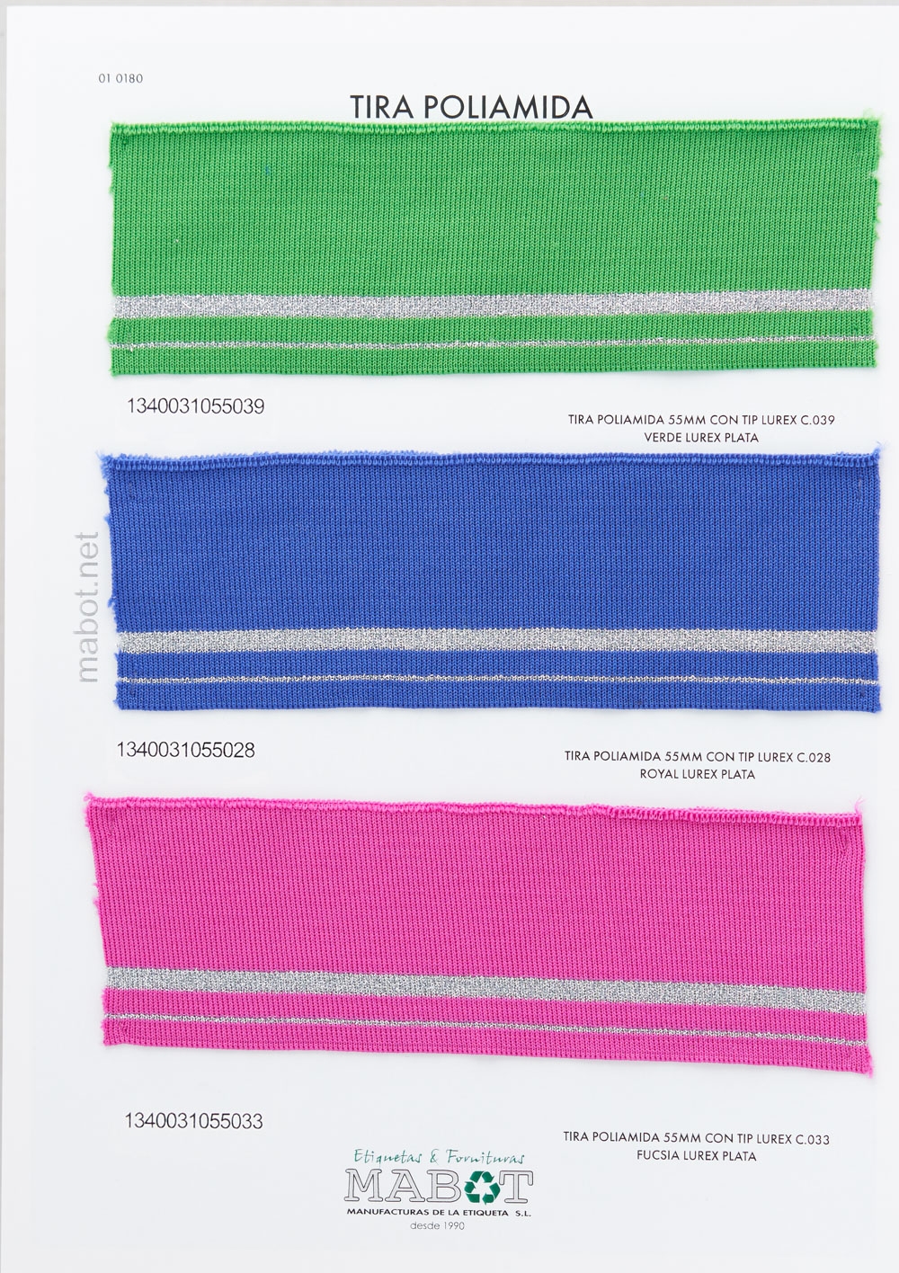 Tira poliamida 55mm con tip lurex, colores disponibles: