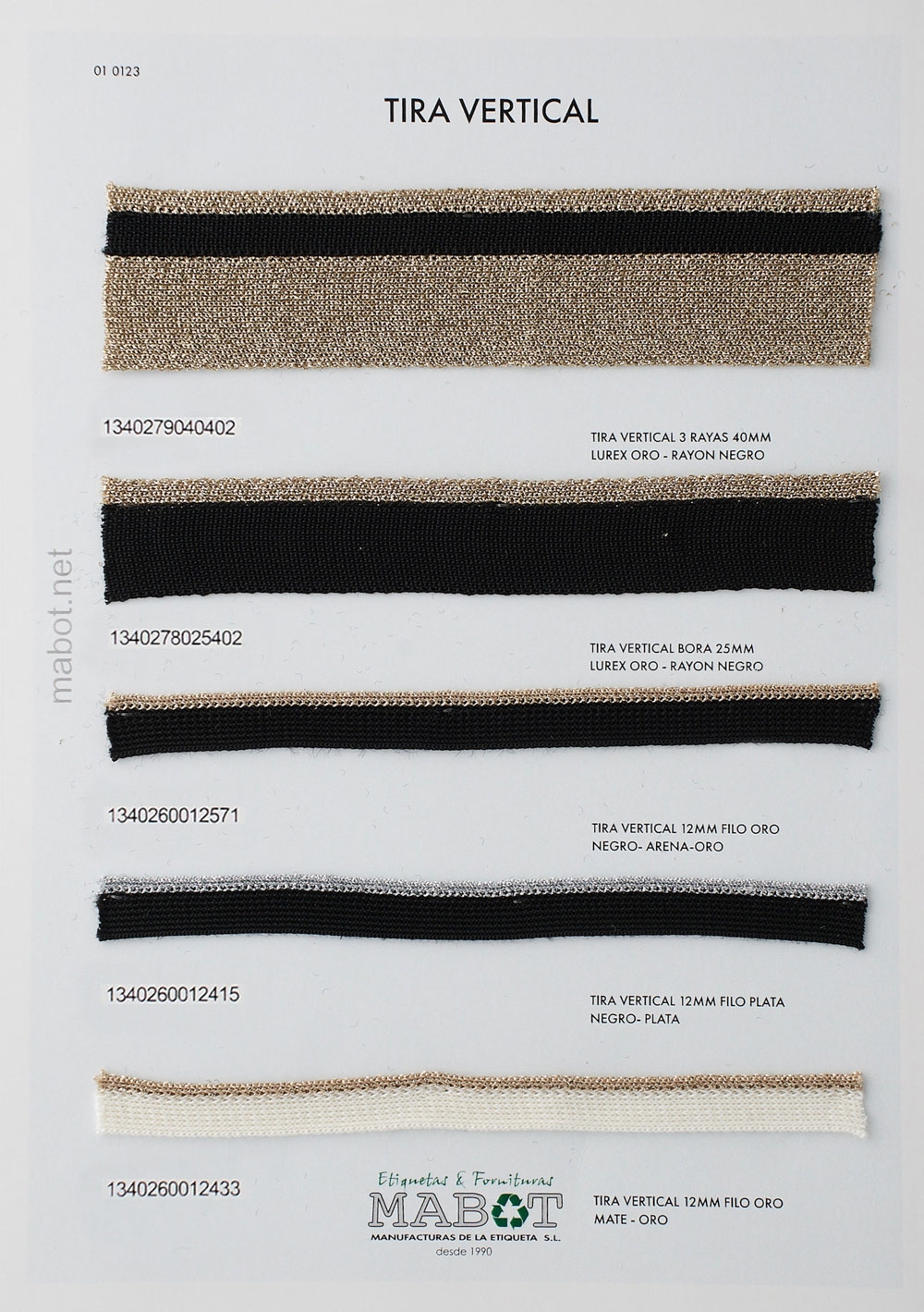 Tira vertical bora 25mm color lurex oro - rayon negro.