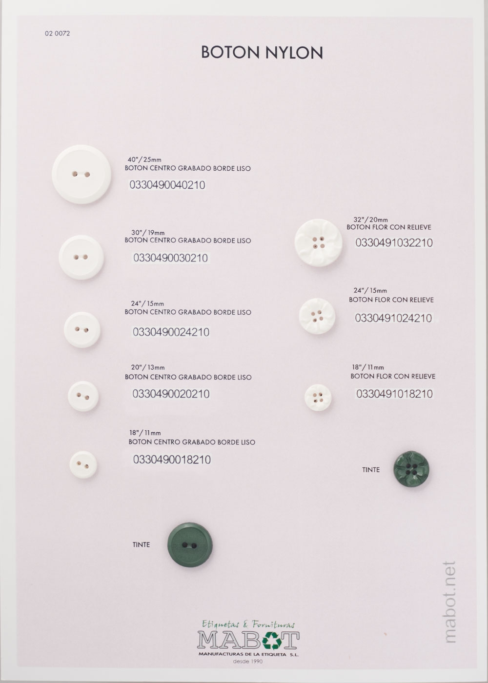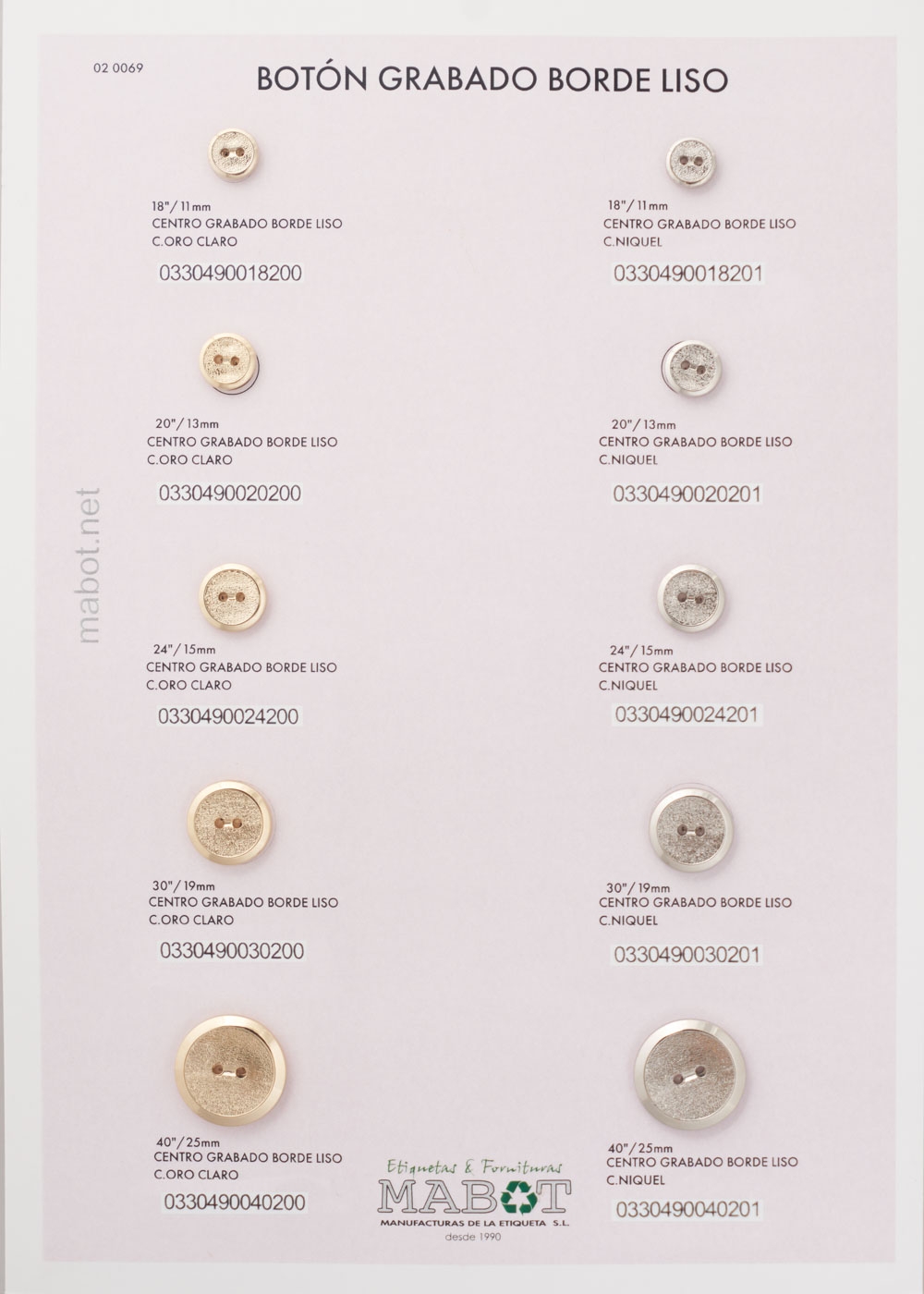 Botón centro grabado con borde liso, disponible de la línea 18 a la línea 40.
