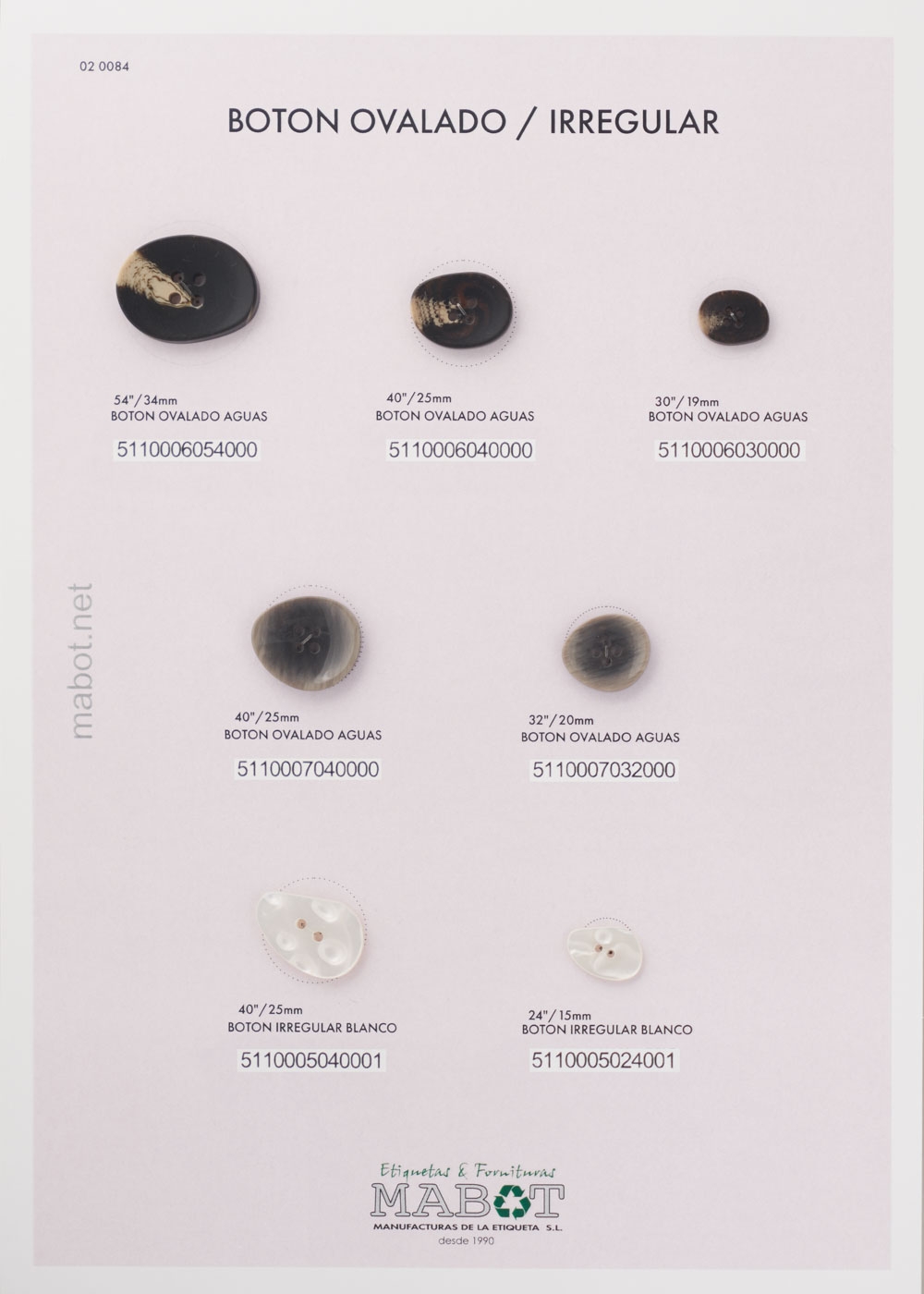 Botón ovalado aguas, disponible de la línea 30 a la línea 54.