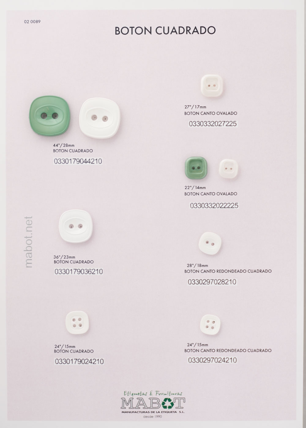 Botón cuadrado, disponible de la línea 24 a la línea 44.