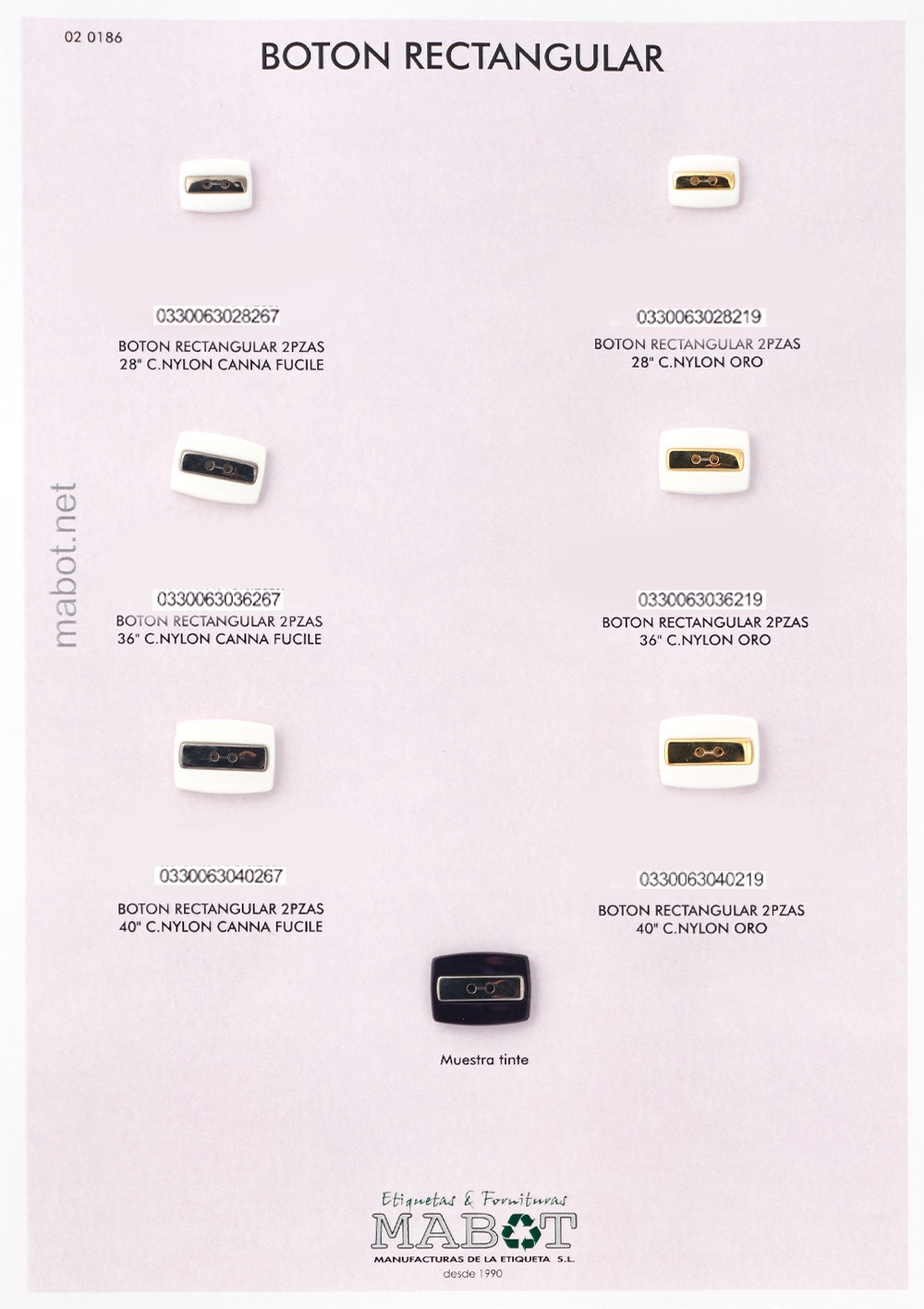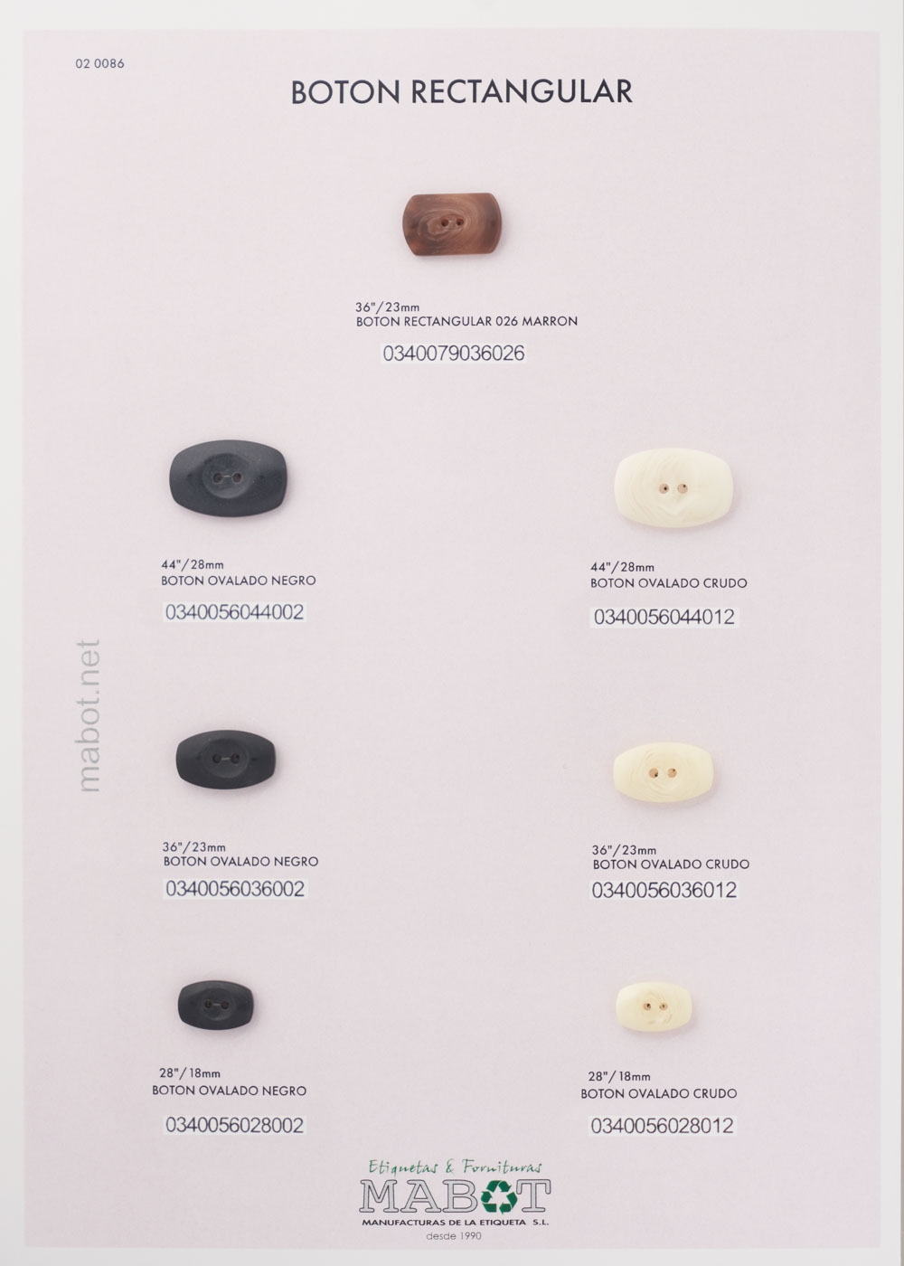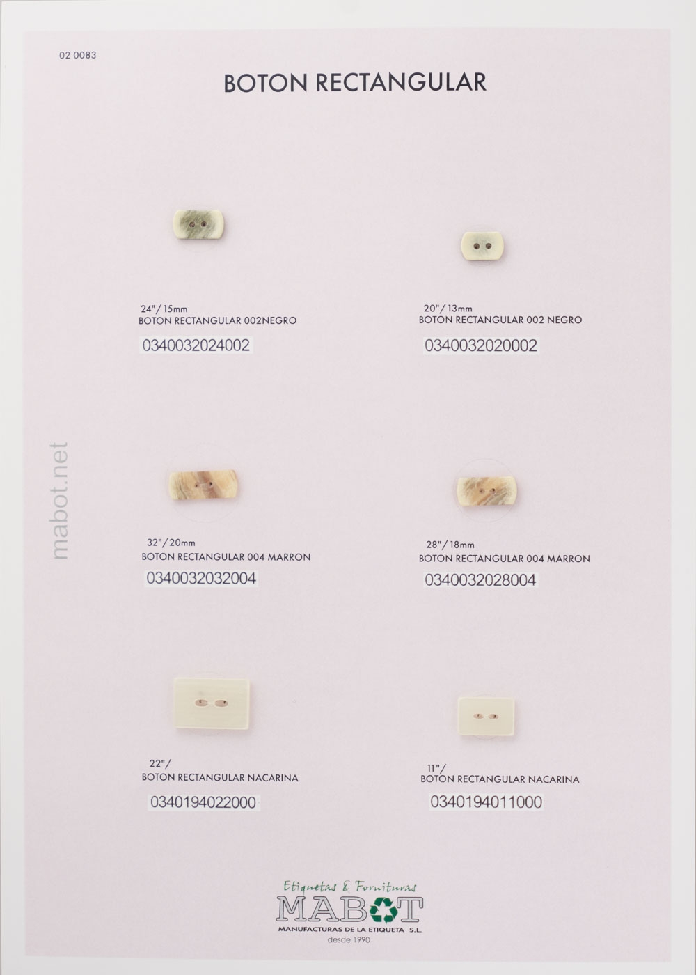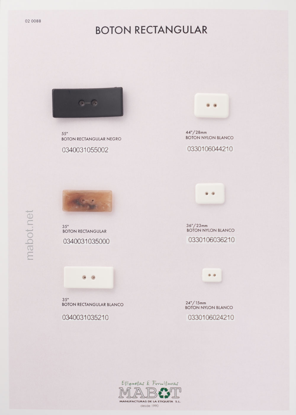 Disponemos de botones rectangulares, de diferentes líneas. Colores disponibles: negro, marrón, nacarina, blanco.