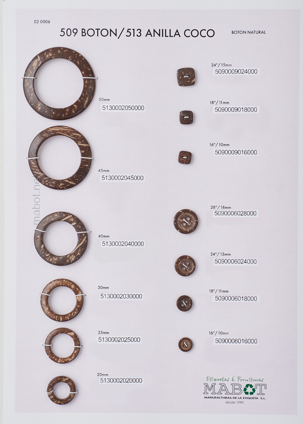 Anillas redondas de coco natural disponible de 20mm a 50mm