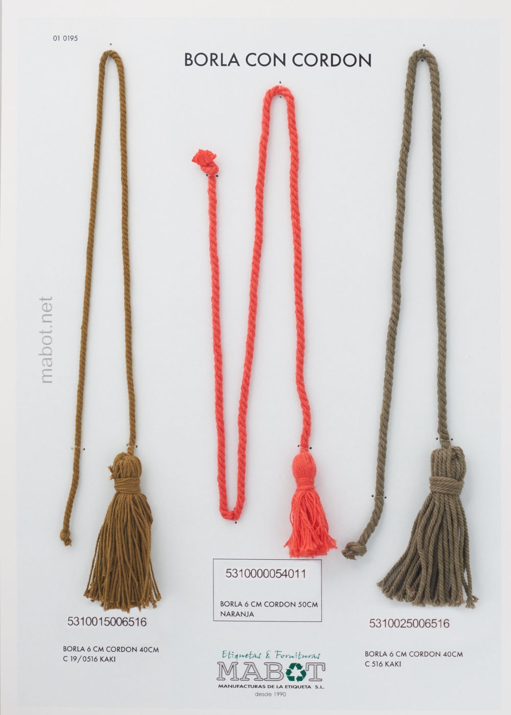 Borla 6cm con cordón 40cm disponible en diferentes tonalidades de kaki.