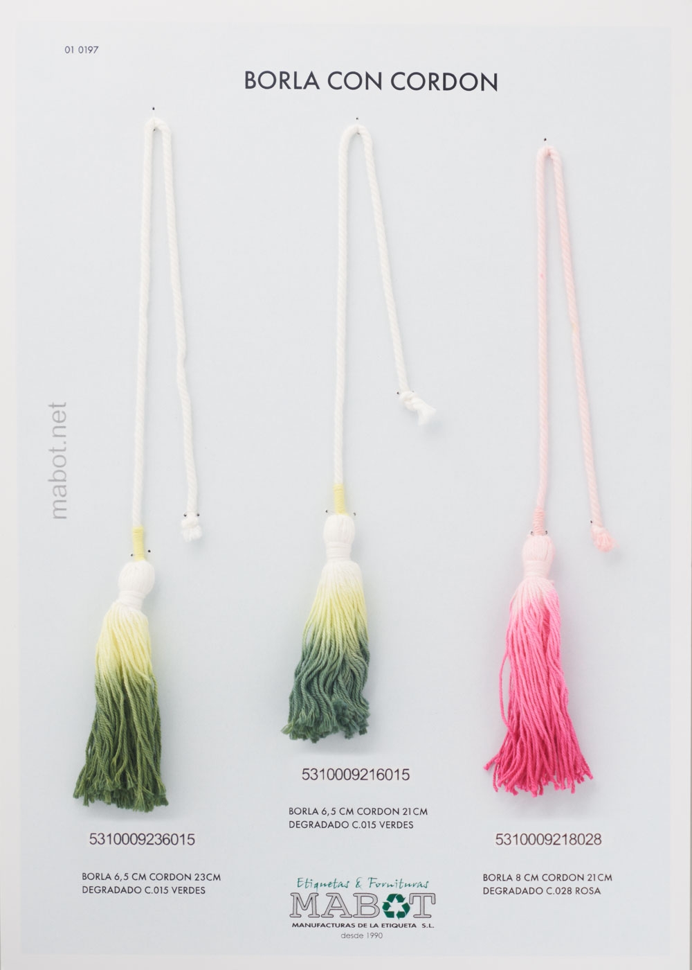 Borla 6,5cm cordón 21cm degradado colores verdes.