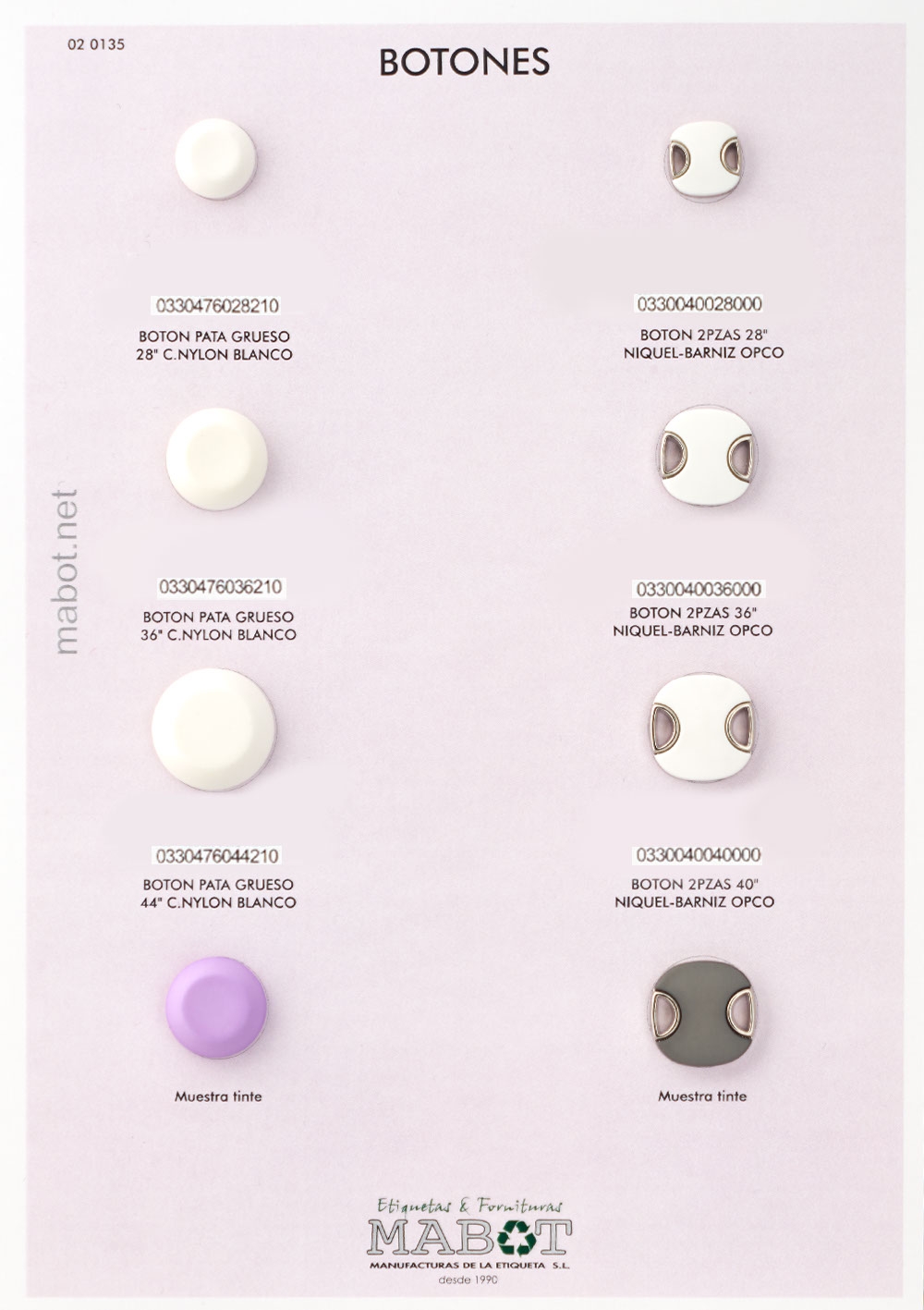 Botón pata compuesto niquel-nylon blanco, en medidas: 26", 36", 40", 50".