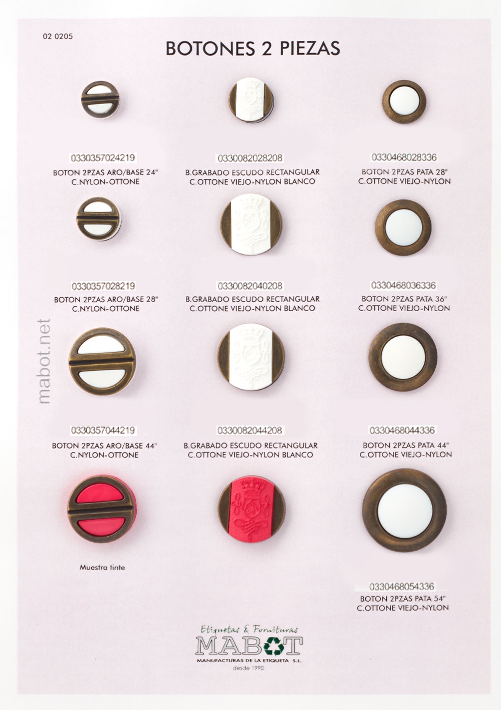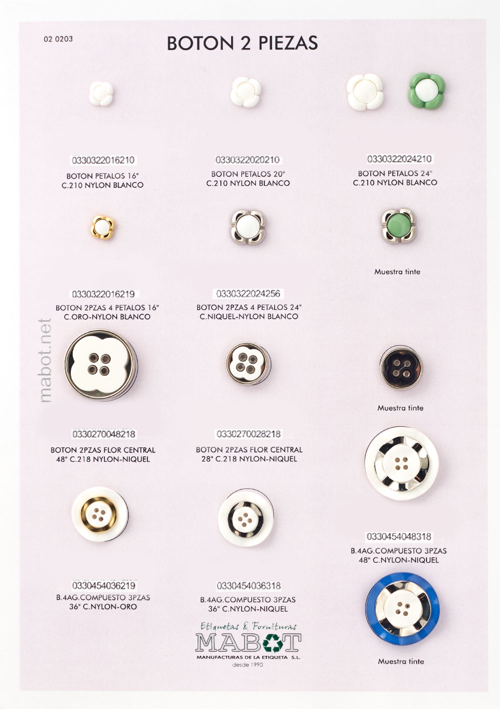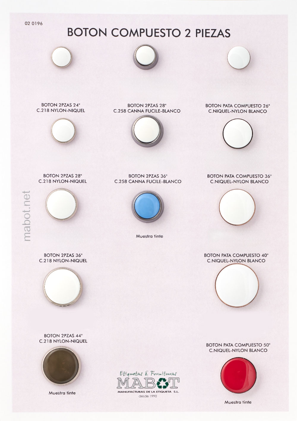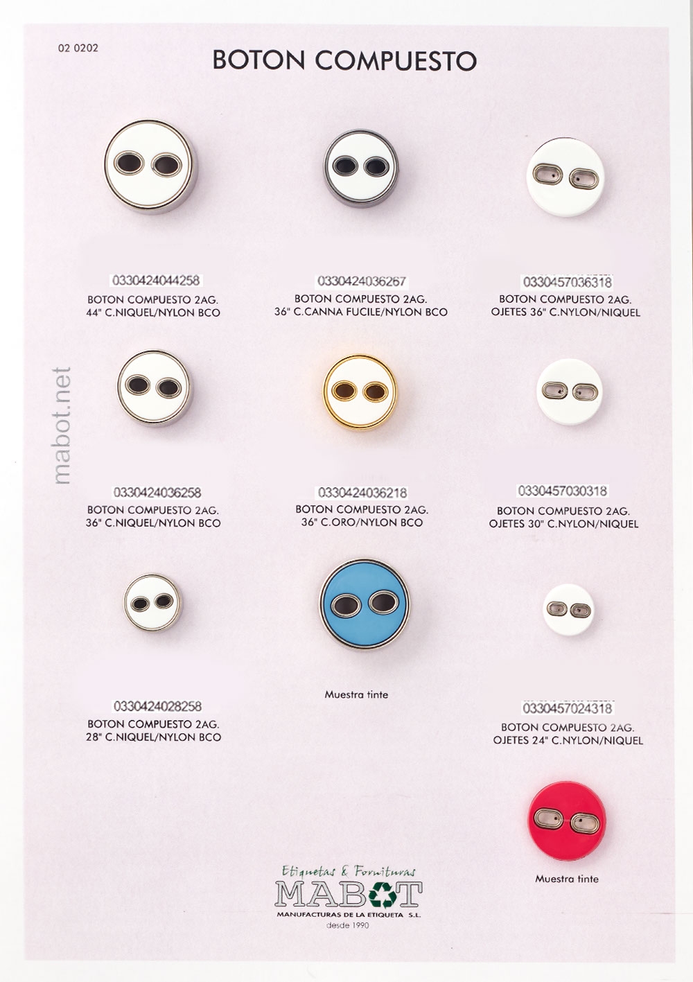 Botón compuesto 2 agujeros ojetes en color nylon/niquel, en medidas: 36", 30", 24".