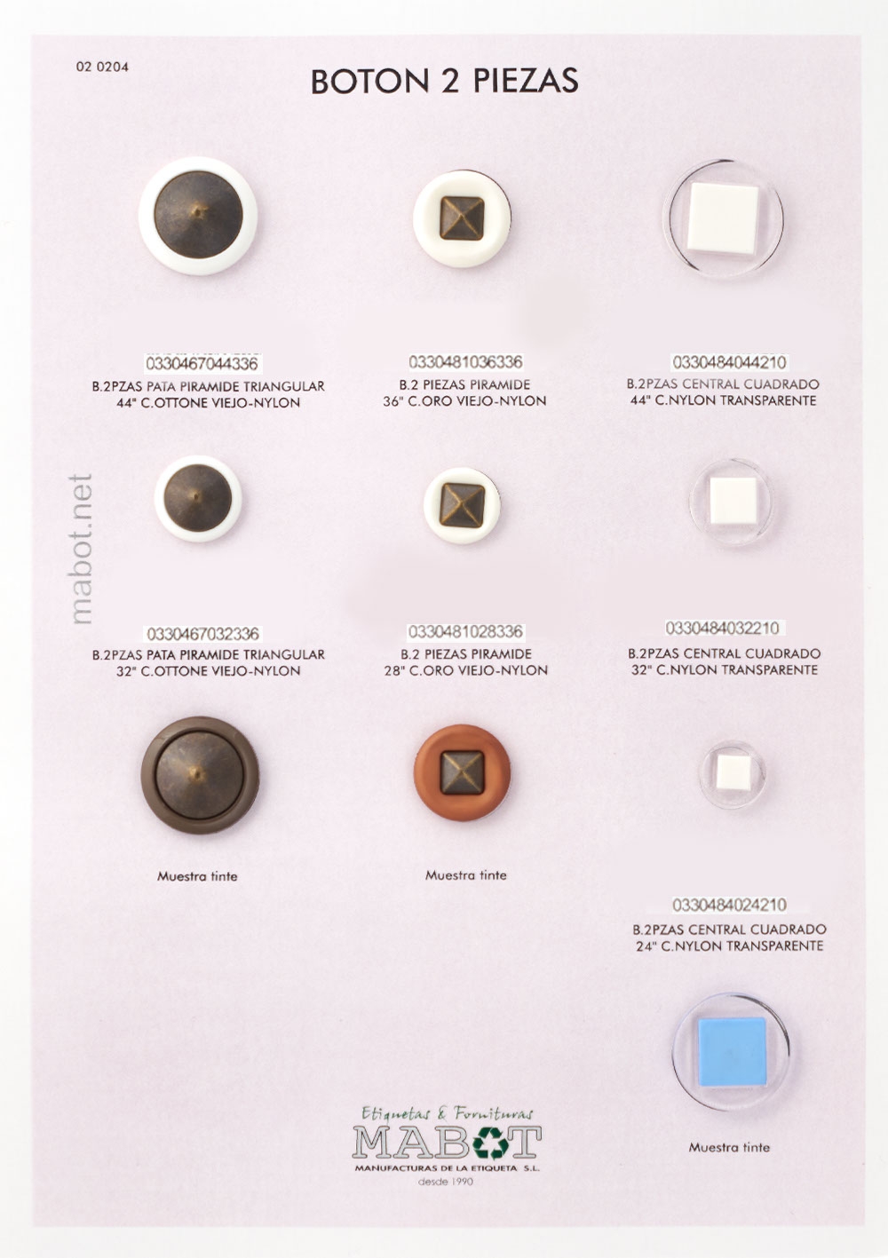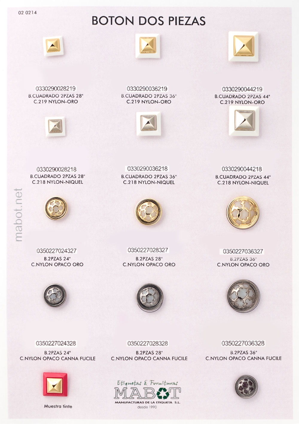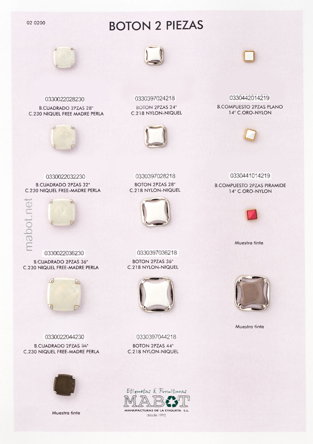Botón dos piezas cuadrado central nylon, disponible en línea 28, 36 y 44.