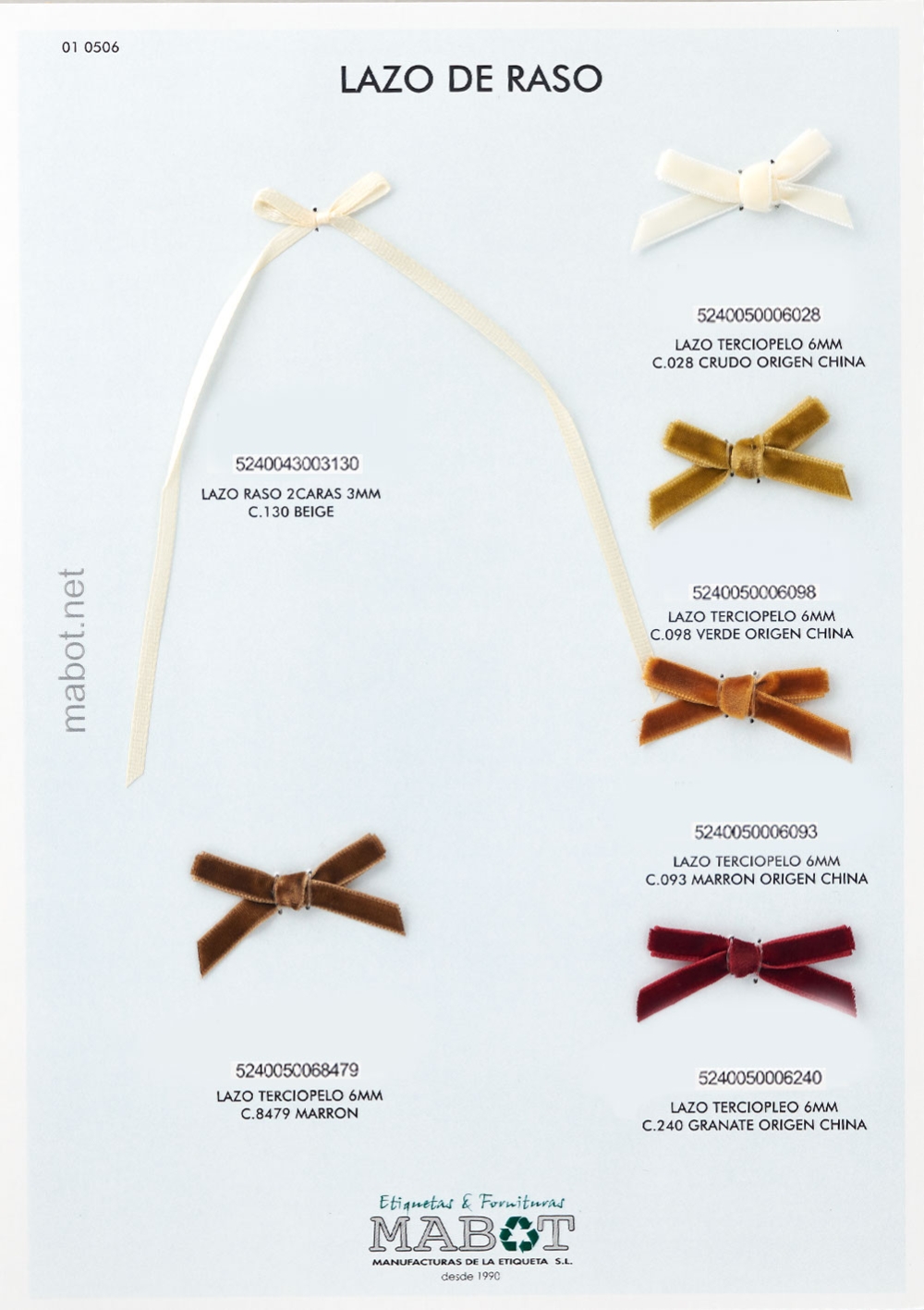 Lazo terciopelo 6mm disponible en: marrón, crudo (origen china), verde (origen china), marrón (origen china), granate (origen china).