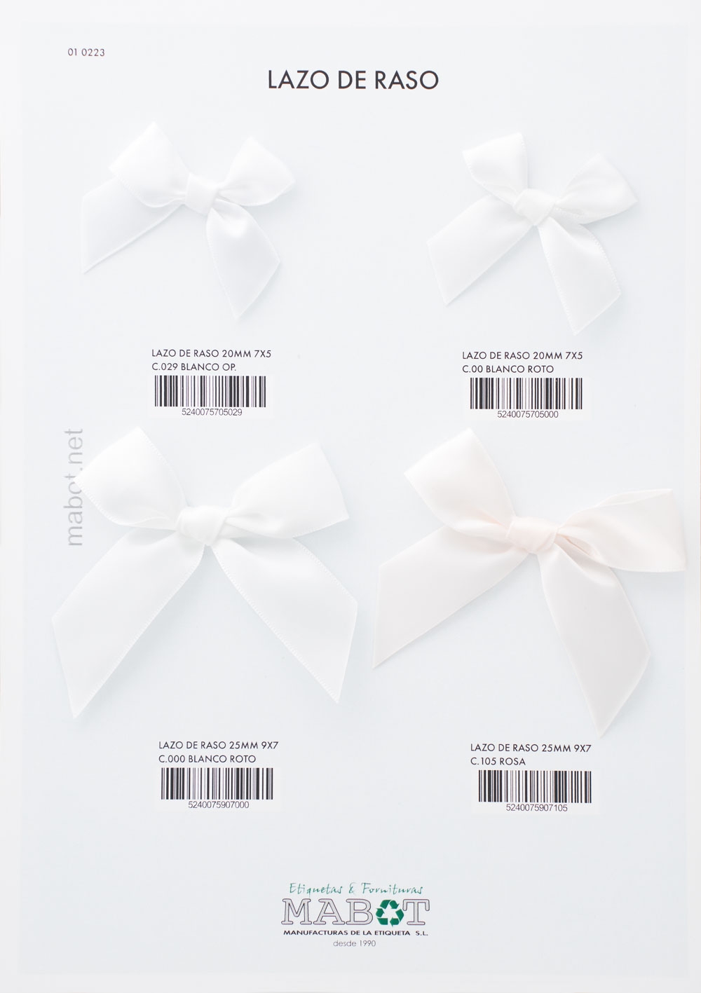 Lazo de raso 20mm 7x5 disponible en color blanco óptico y blanco roto.