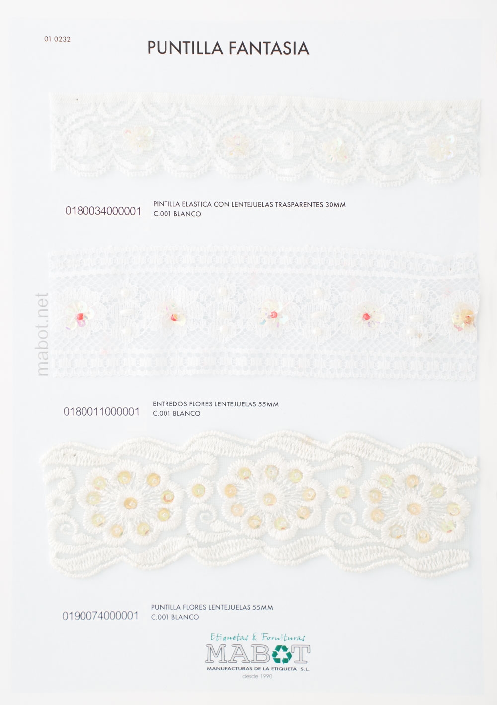 Puntilla elástica con lentejuelas transparentes 30mm color blanco.