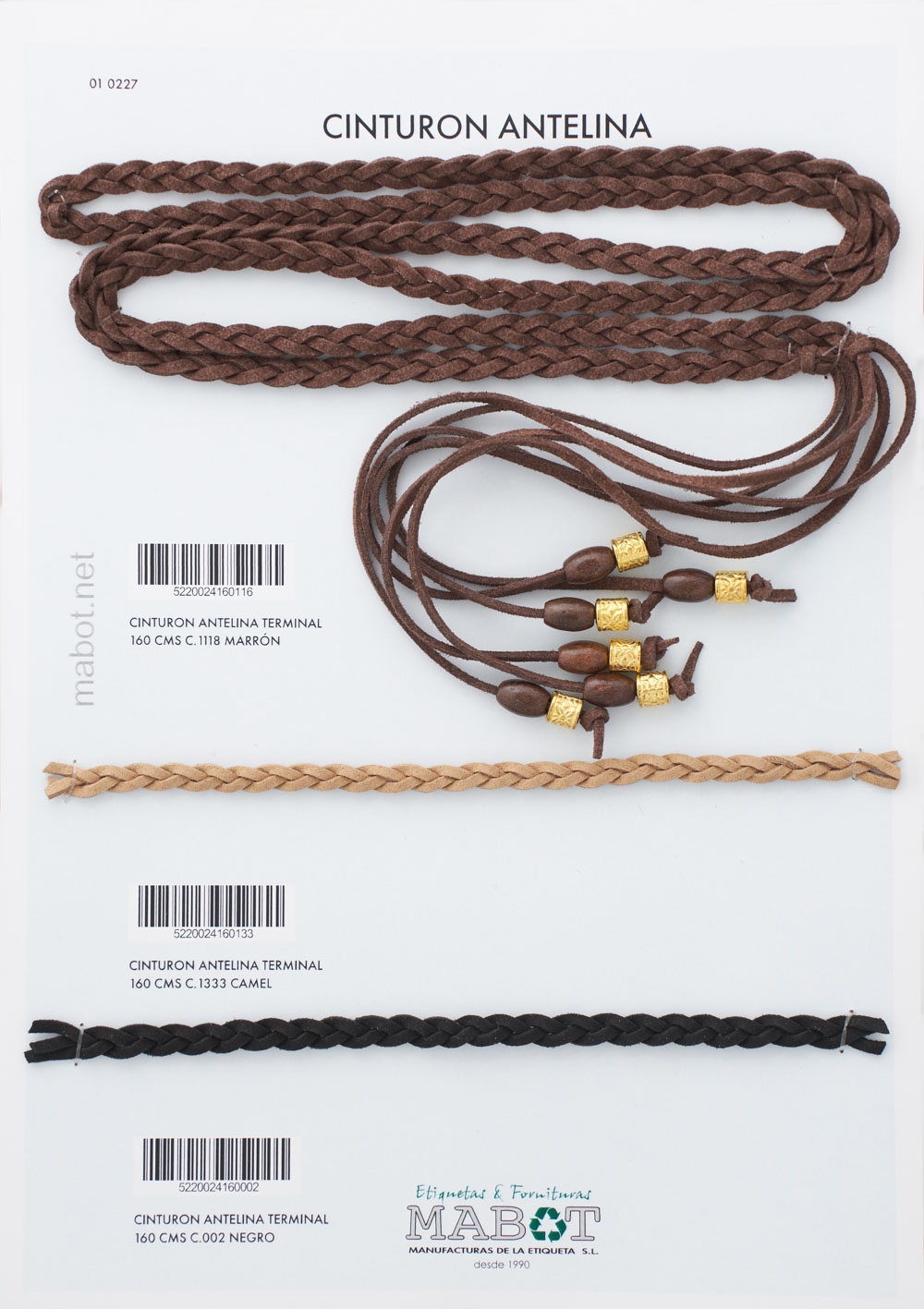 Cinturón antelina terminal 160cms disponible en los siguientes colores: marrón, camel, negro.