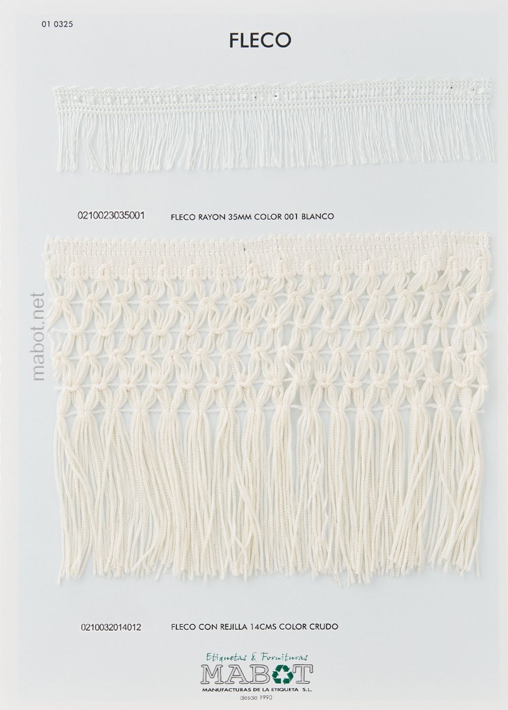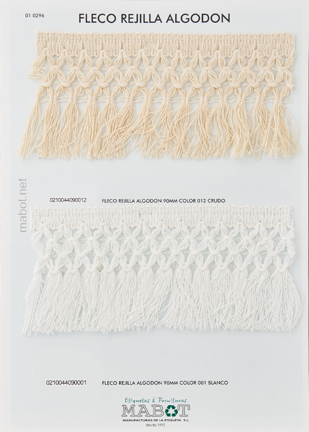 Fleco rejilla algodón 90mm, disponible en: crudo, blanco.