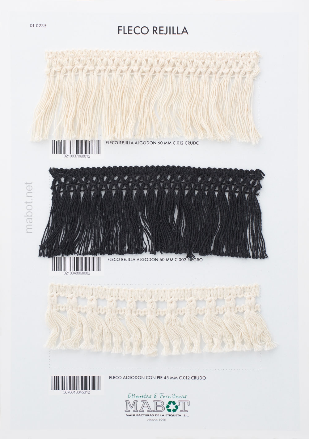 Fleco rejilla algodón 60mm disponible en crudo y en negro.