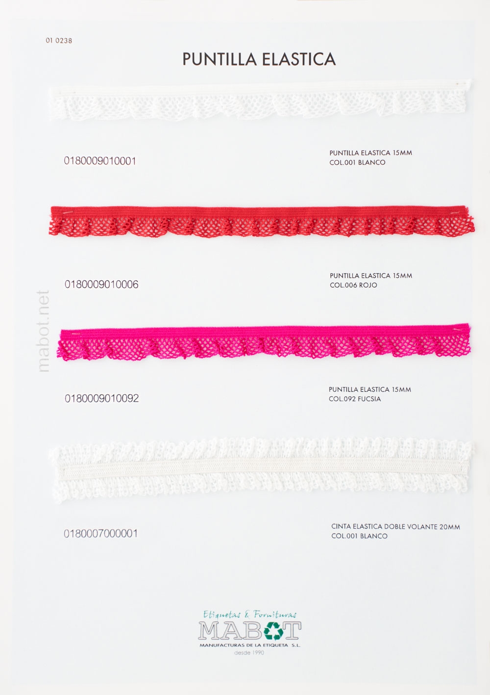 Puntilla elástica 15mm disponible en los siguientes colores: blanco, rojo, fucsia.