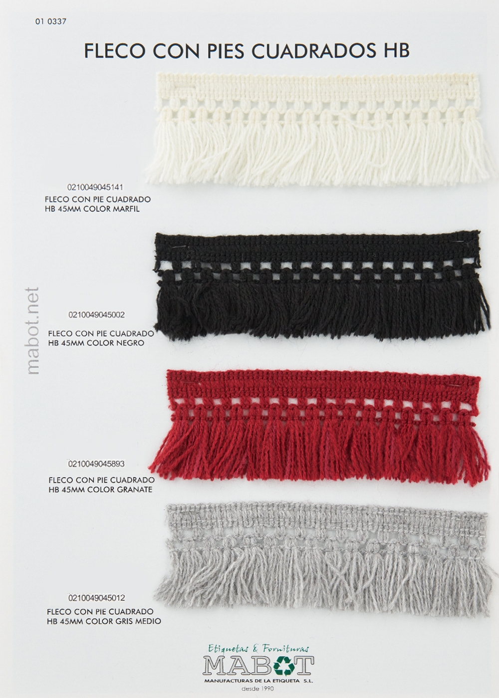 Fleco con pie cuadrado HB 45mm disponible en: marfil, negro, granate, gris medio.