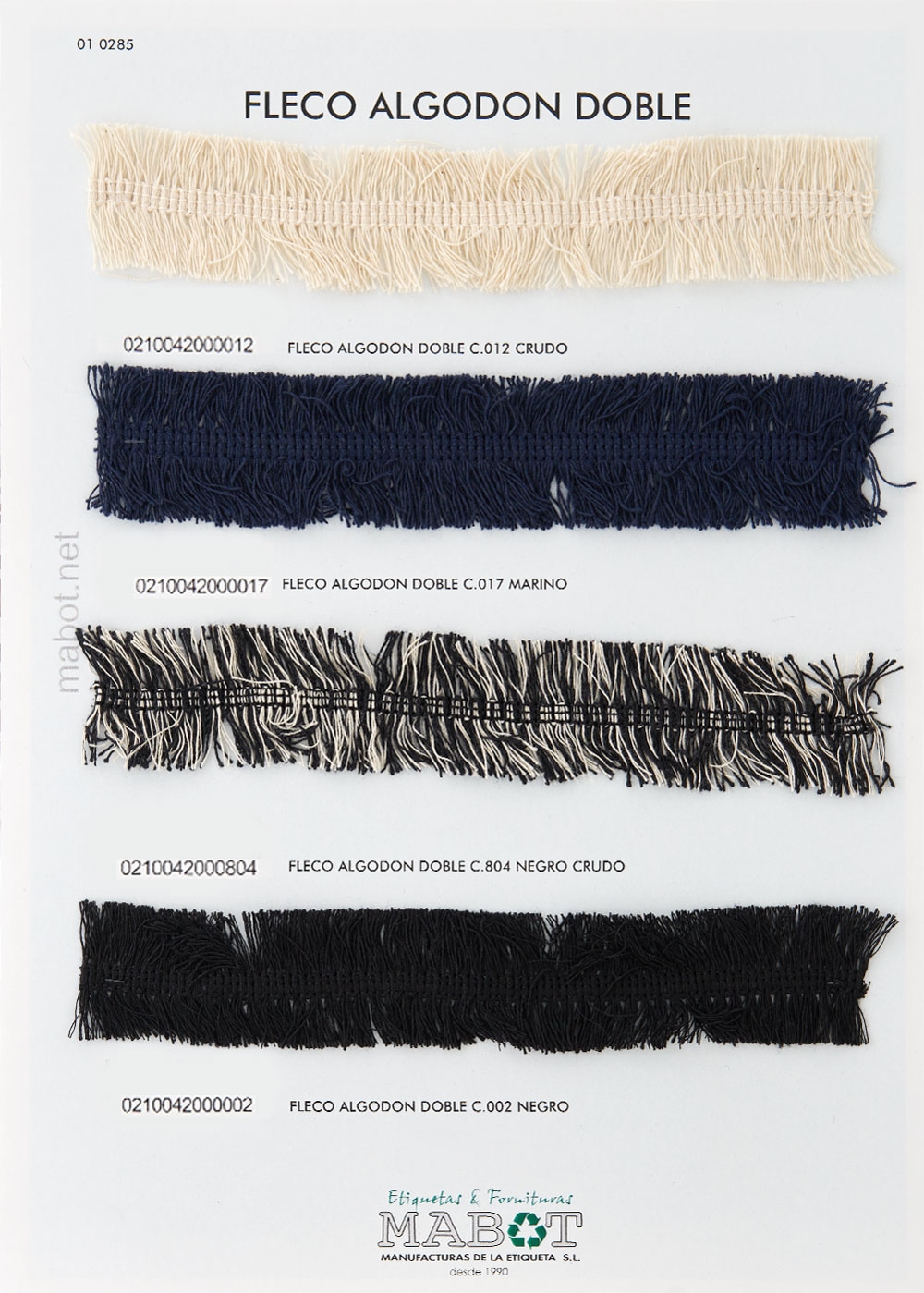 Fleco algodón doble, disponible en: crudo, marino, negro crudo, negro.