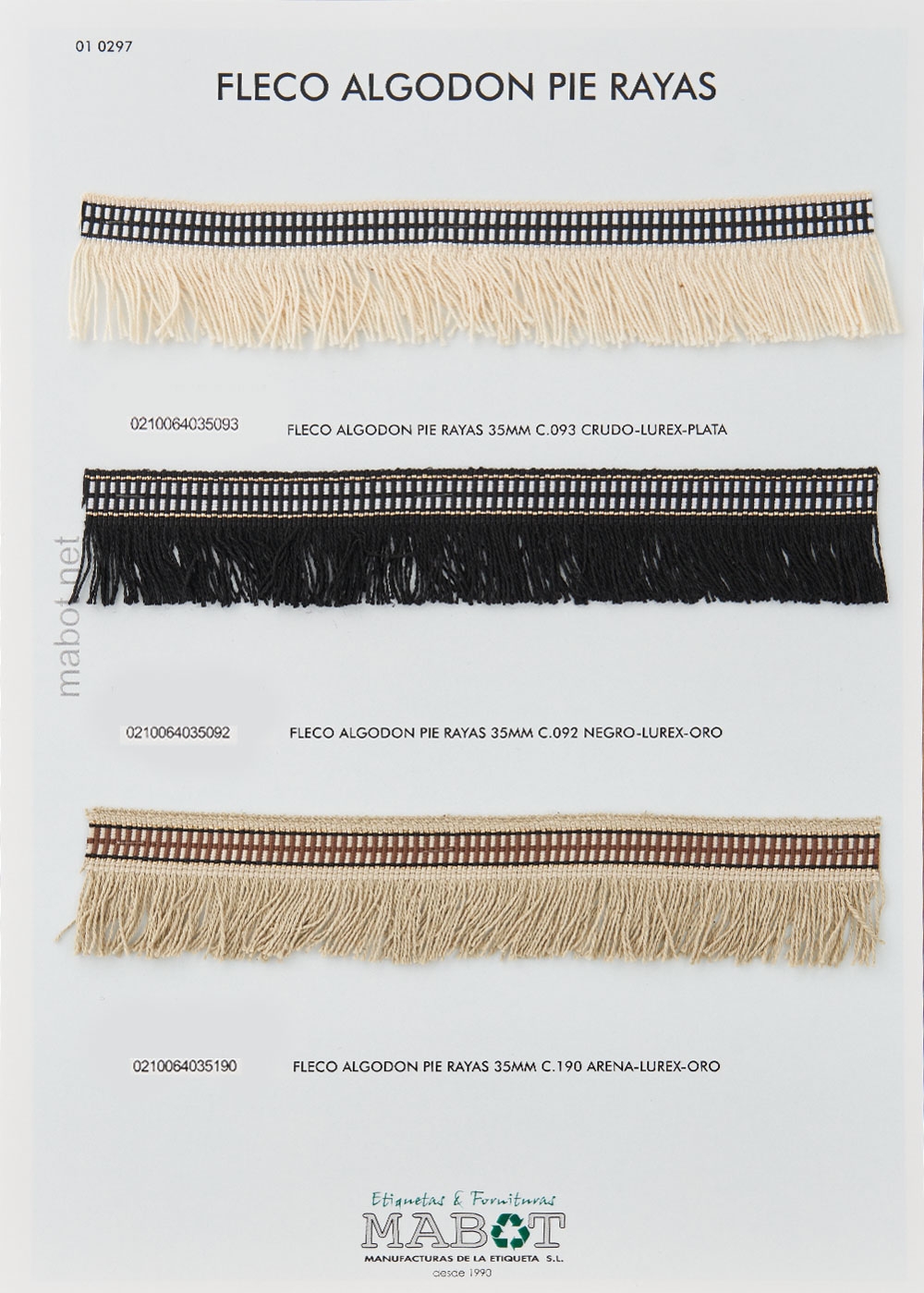 Fleco algodón pie rayas 35mm, disponible en las siguientes combinaciones de color: