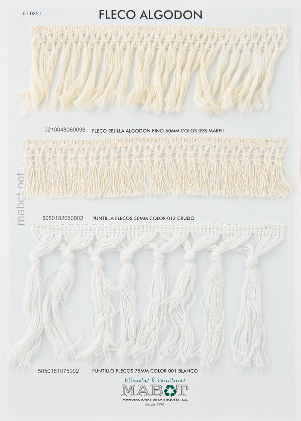 Fleco rejilla algodón fino 60mm, disponible en: marfil.