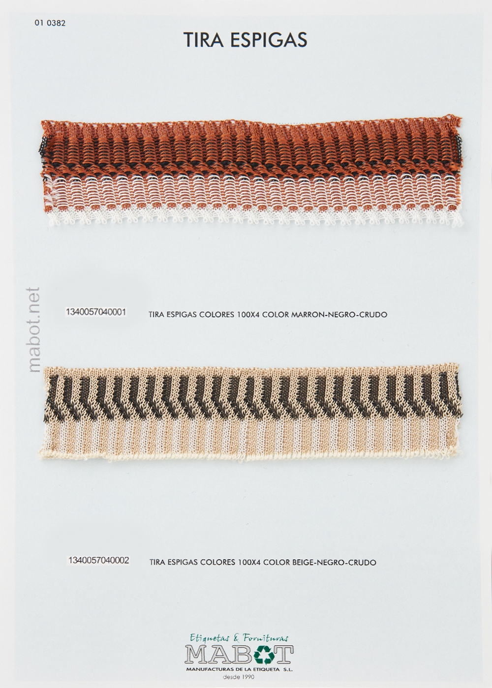 Tira espigas 100x4, disponible en: marrón-negro-crudo, beige-negro-crudo.