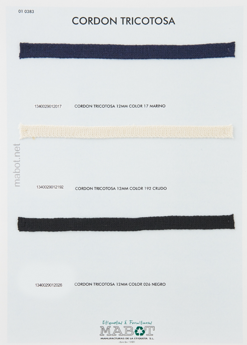 Cordón tricotosa 12mm, disponible en: crudo, negro, marino.