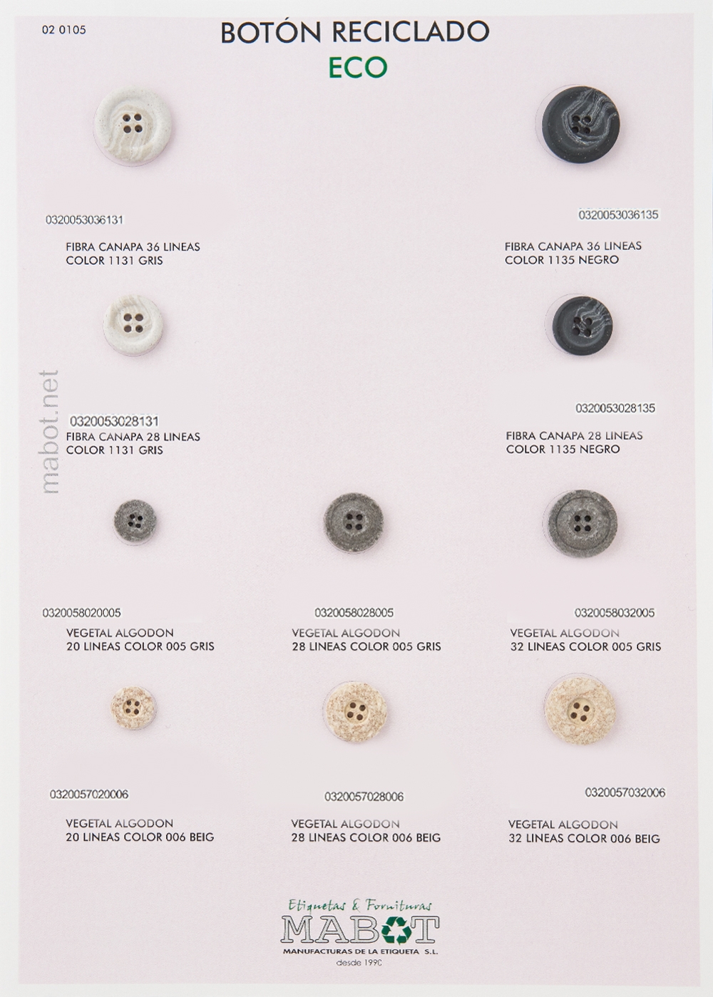 Botón reciclado ECO, disponible en: