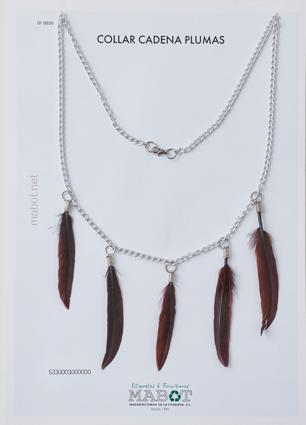 Collar de cadena con cinco plumas y cierre