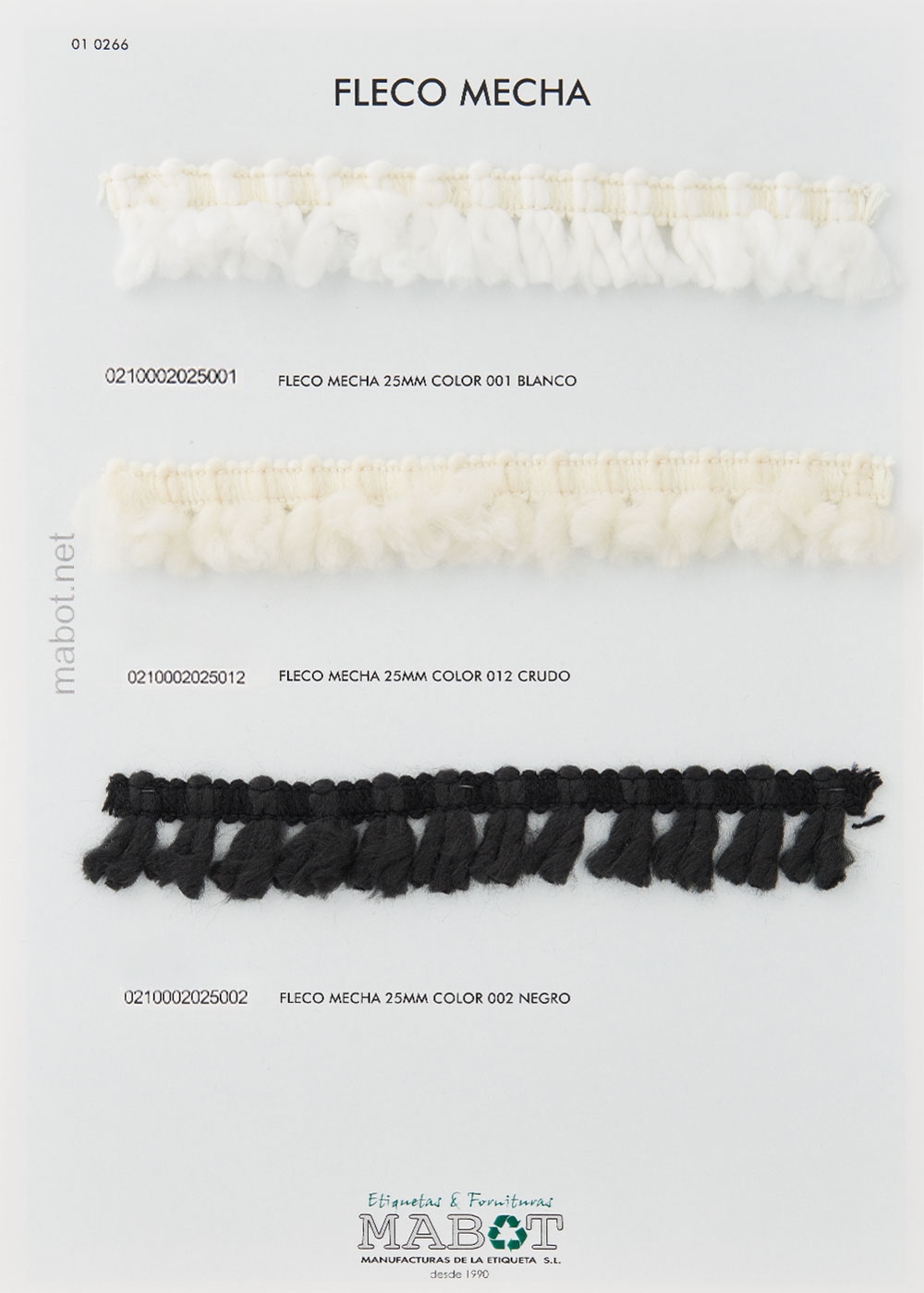 Fleco mecha 25mm, disponible en: blanco, crudo, negro.