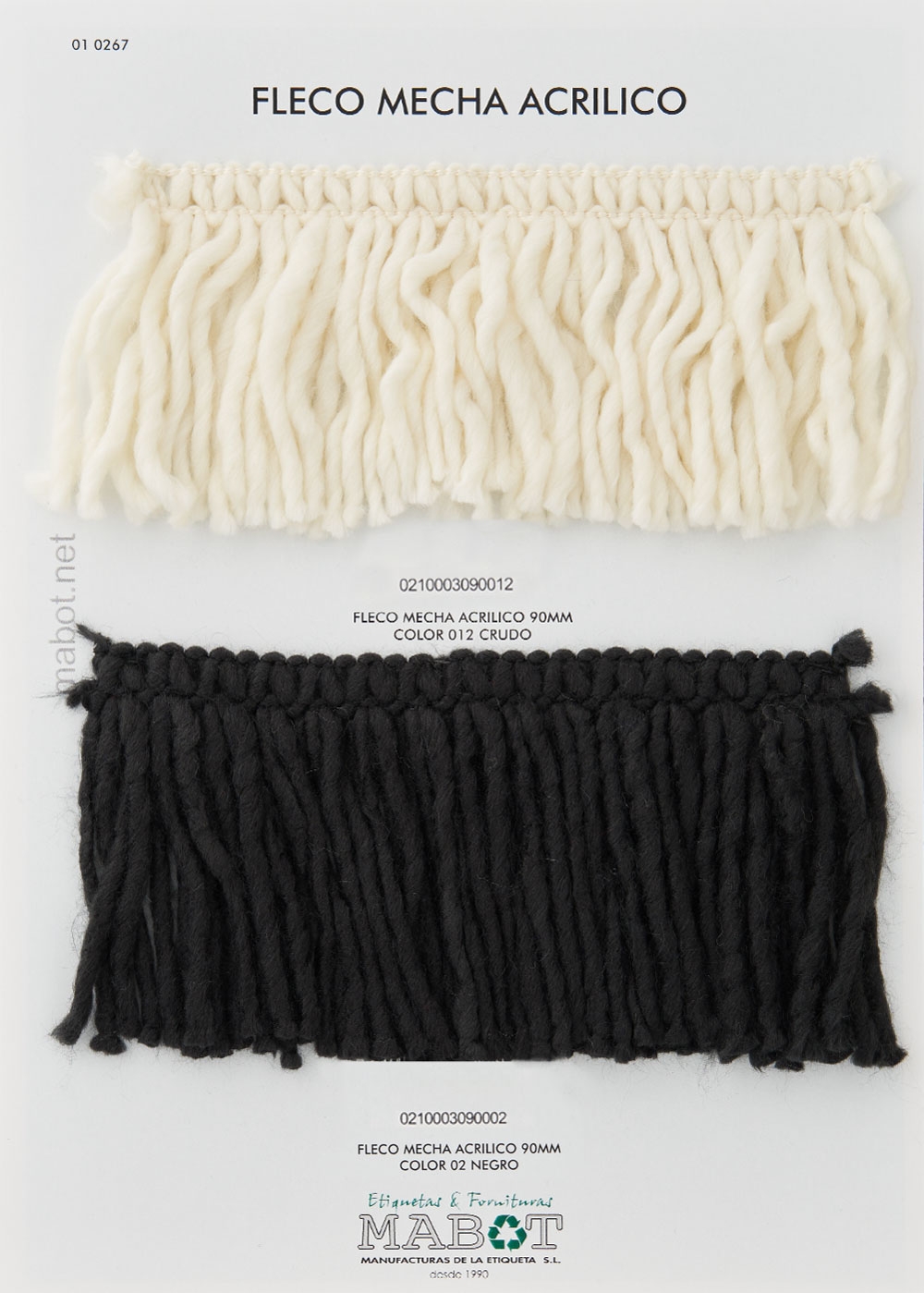 Fleco mecha acrílico 90mm, disponible en: crudo, negro.