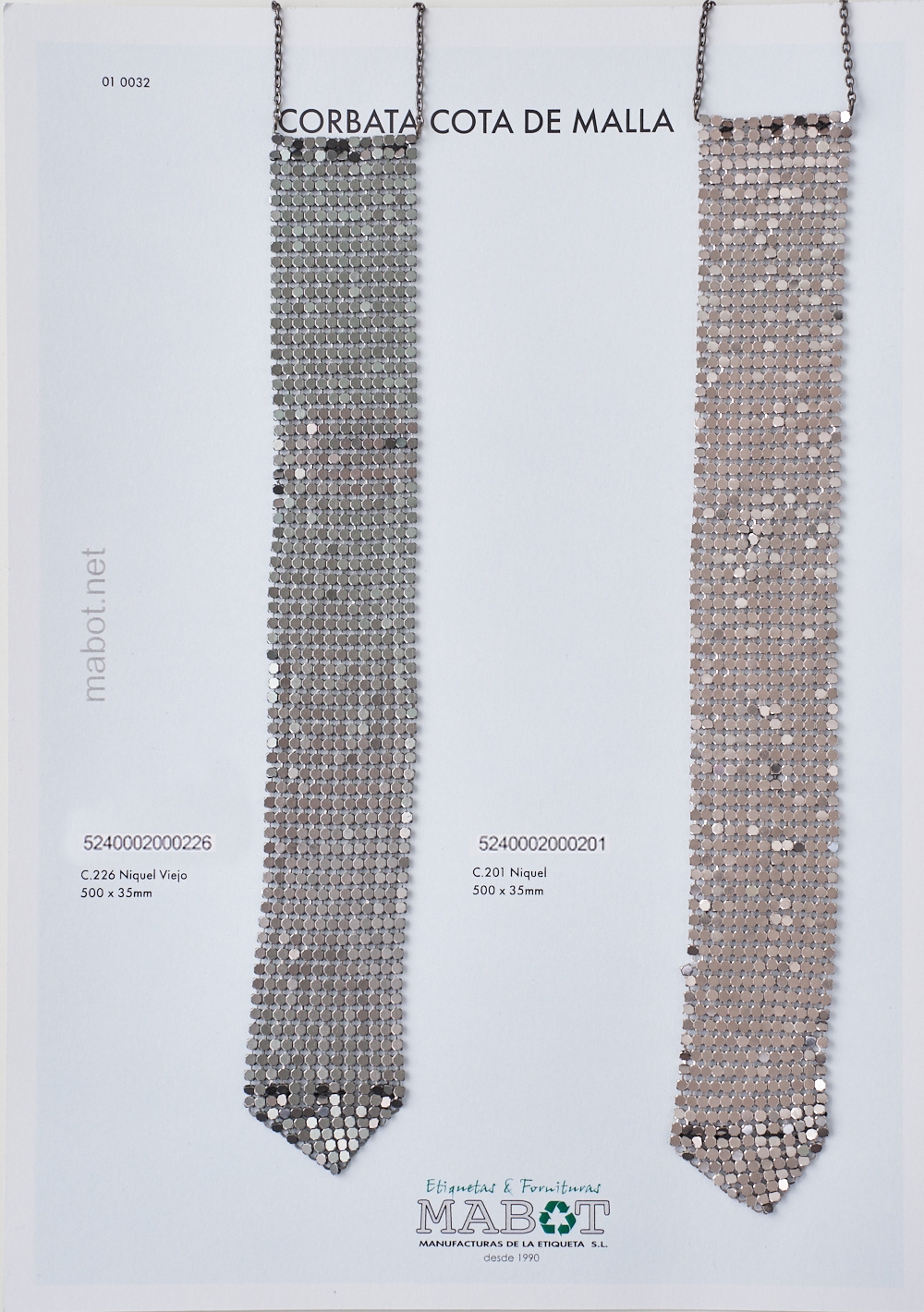 Collar individual tipo corbata de cota de malla , en níquel viejo y níquel