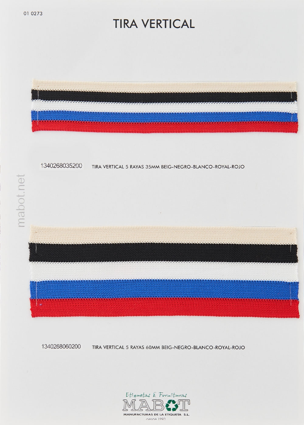 Tira vertical 5 rayas, colores beige-negro-blanco-royal-rojo. Disponible en: 35mm, 60mm.