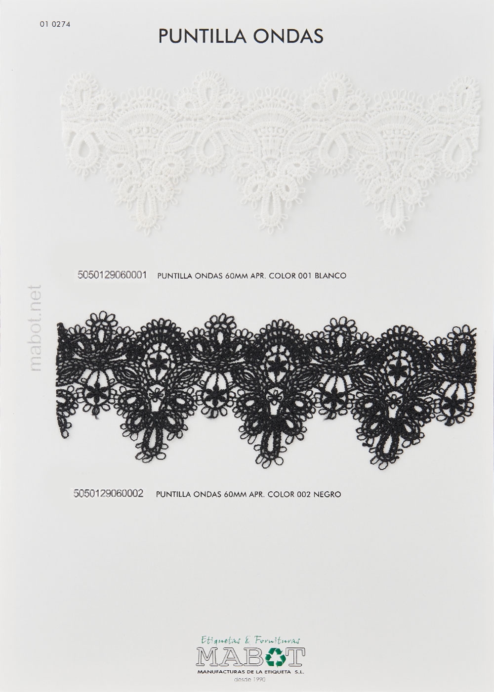 Puntilla ondas 60mm, disponible en: blanco, negro.
