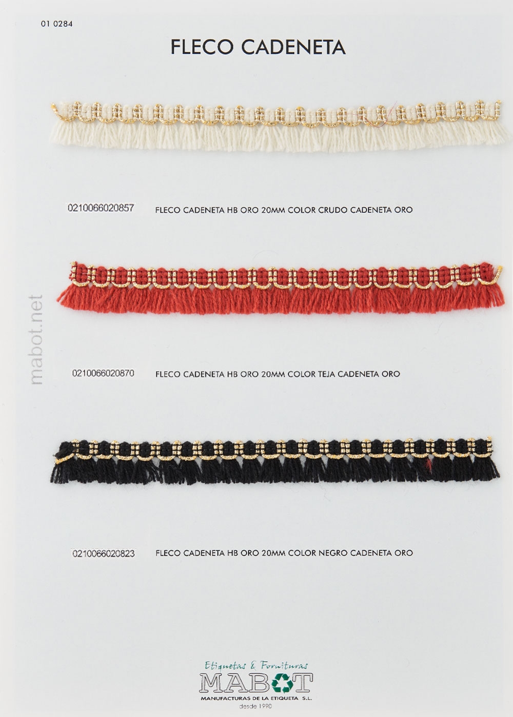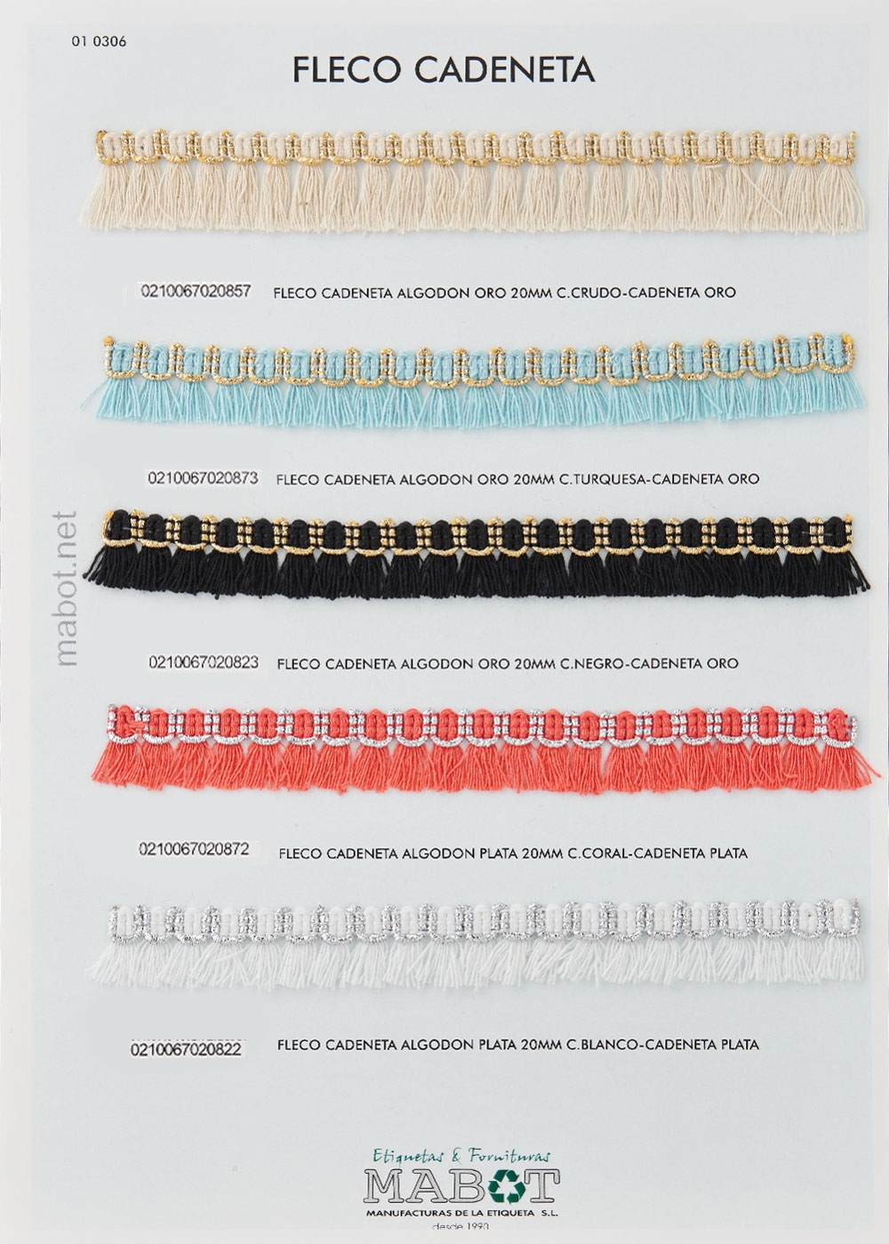 Fleco cadeneta algodón oro 20mm, disponible en: crudo, turquesa, negro, coral, blanco.
