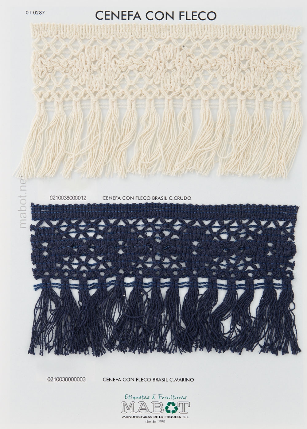Cenefa con fleco brasil, disponible en: crudo, marino.