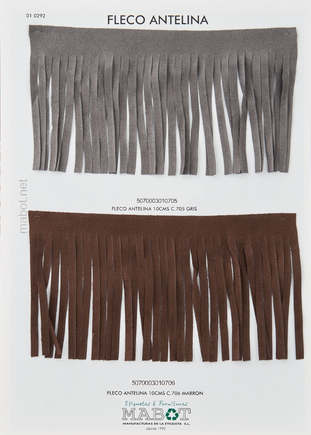Fleco antelina 10cms, disponible en: gris, marrón, negro.